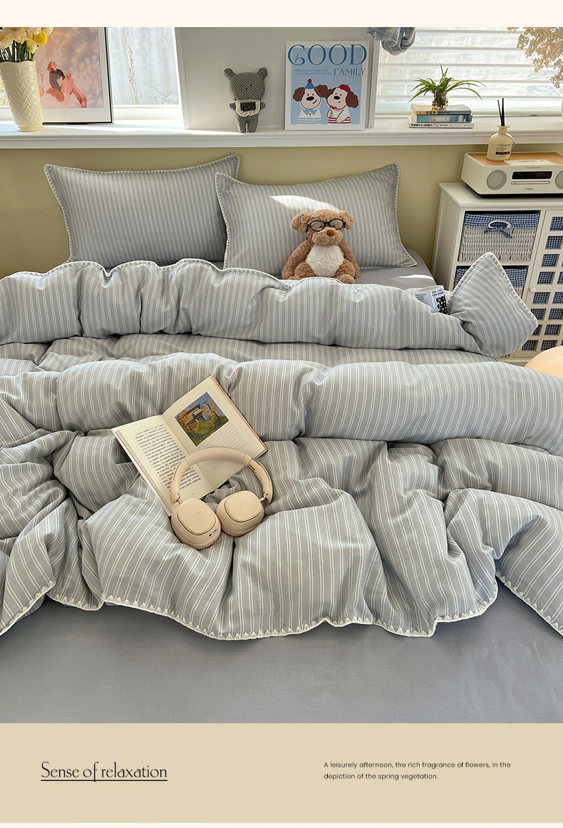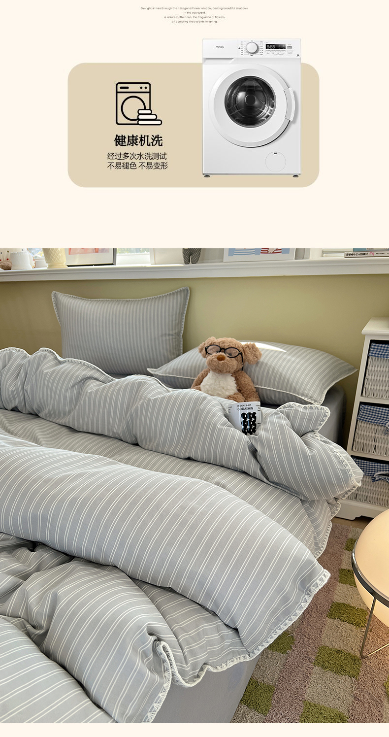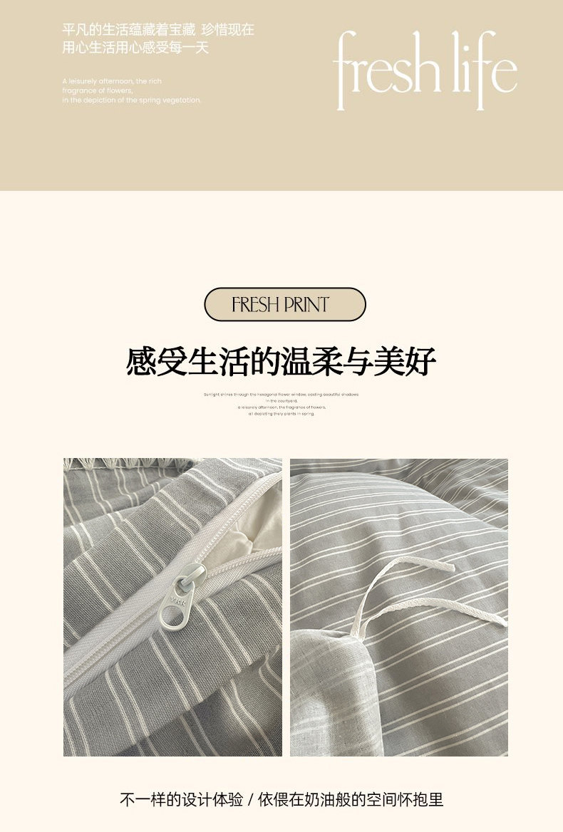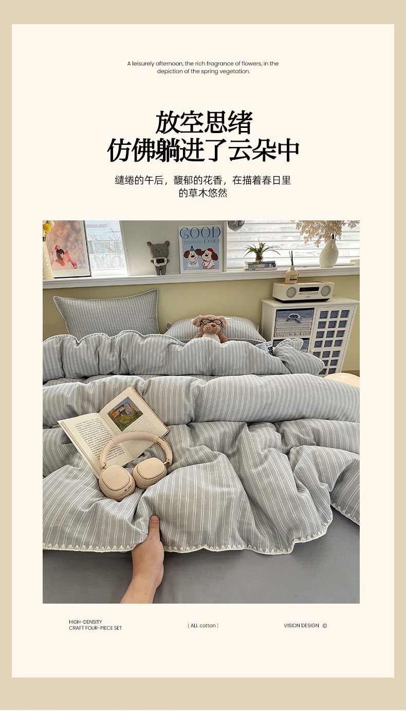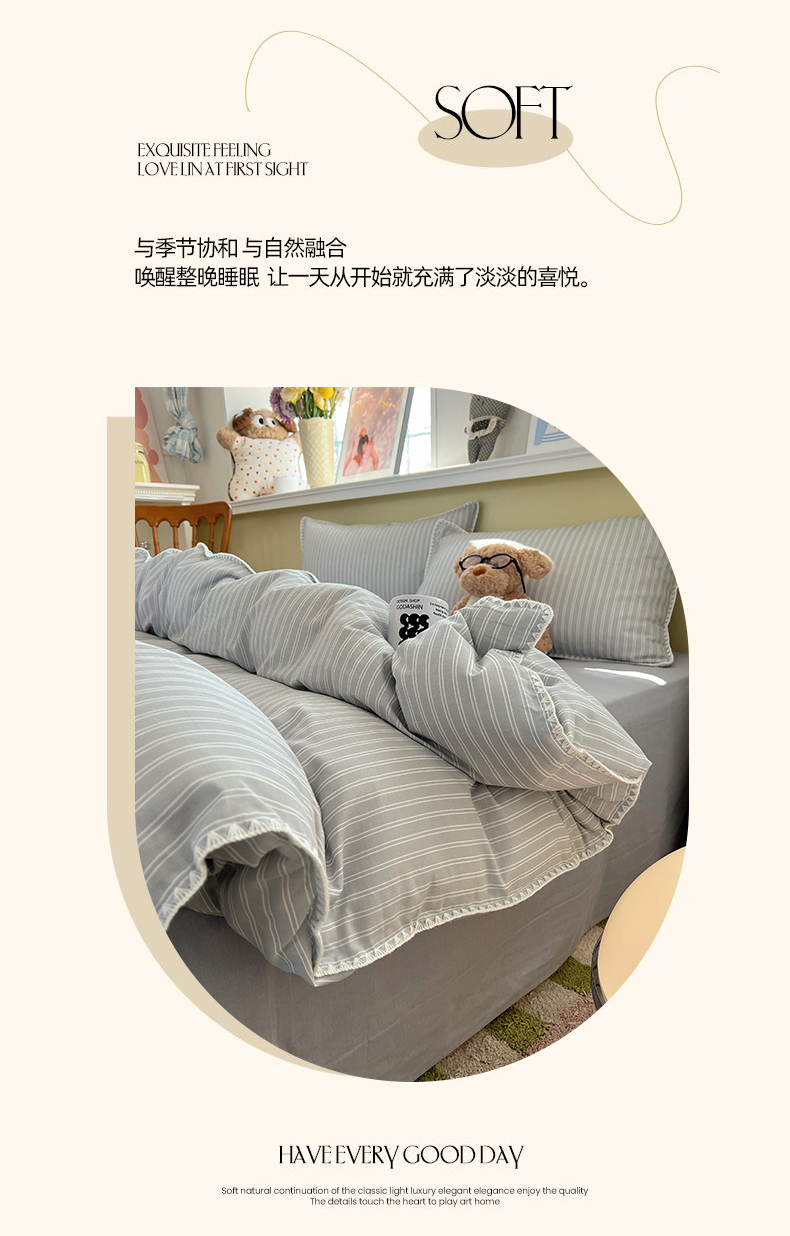 当前位置: 91家纺网 > 商品网购 > 床品套件 > 四件套 > 双层纱四件套 > 曼之夏 2026新款全棉纯棉有氧双层纱贝壳边四件套 贝壳边休闲条纹