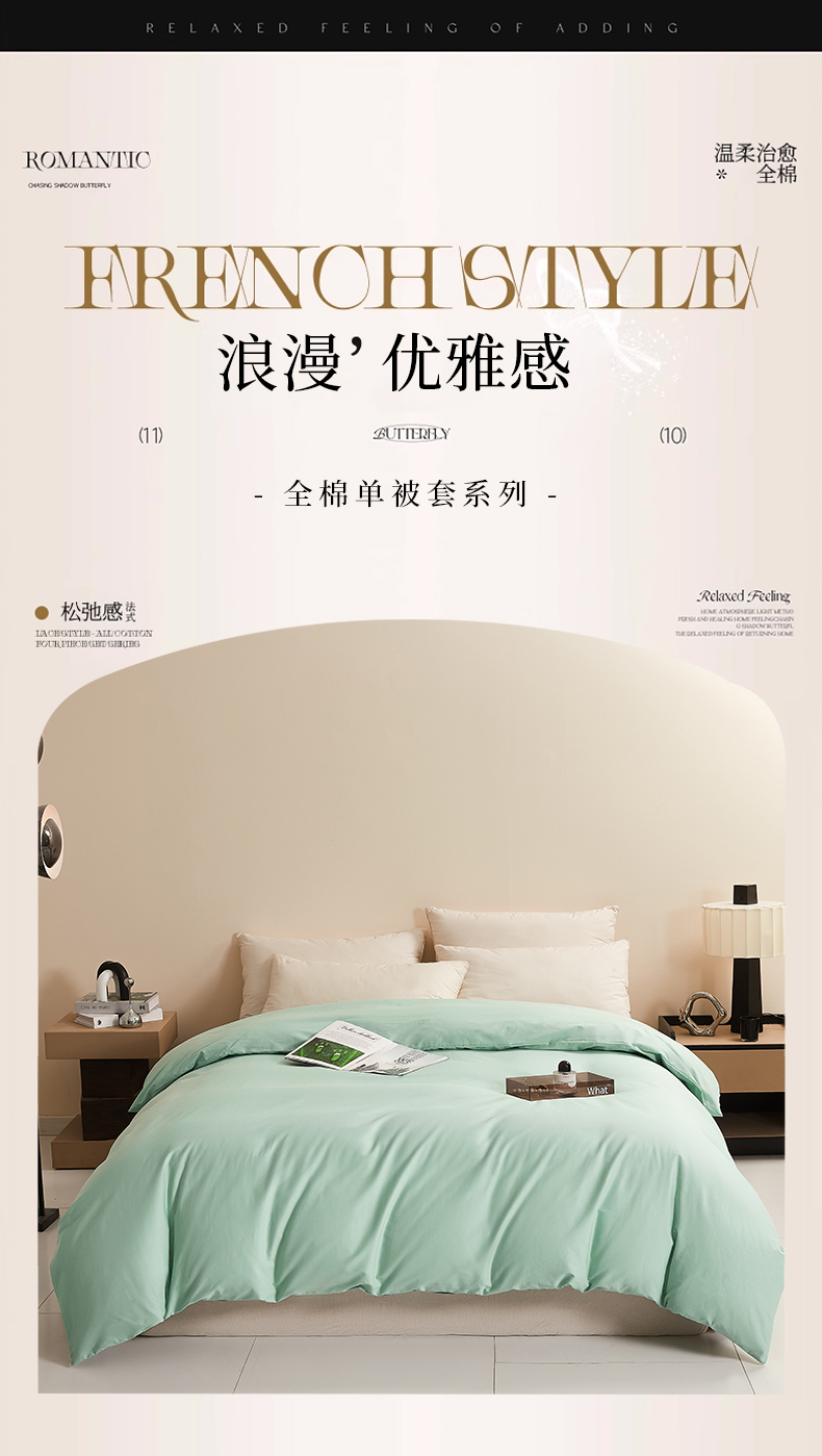 • 91家纺网 家纺一手货源 找家纺 名优家纺 2026新款全棉纯棉单被套被套单件 莫奈绿