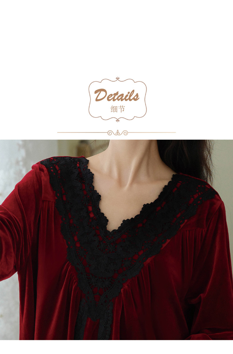 商品名称:洛兰沙家居馆 2026新款秋冬宽松复古宫廷绒款V领睡裙睡袍长袖长款公主保暖家居服绒睡衣 黑色
