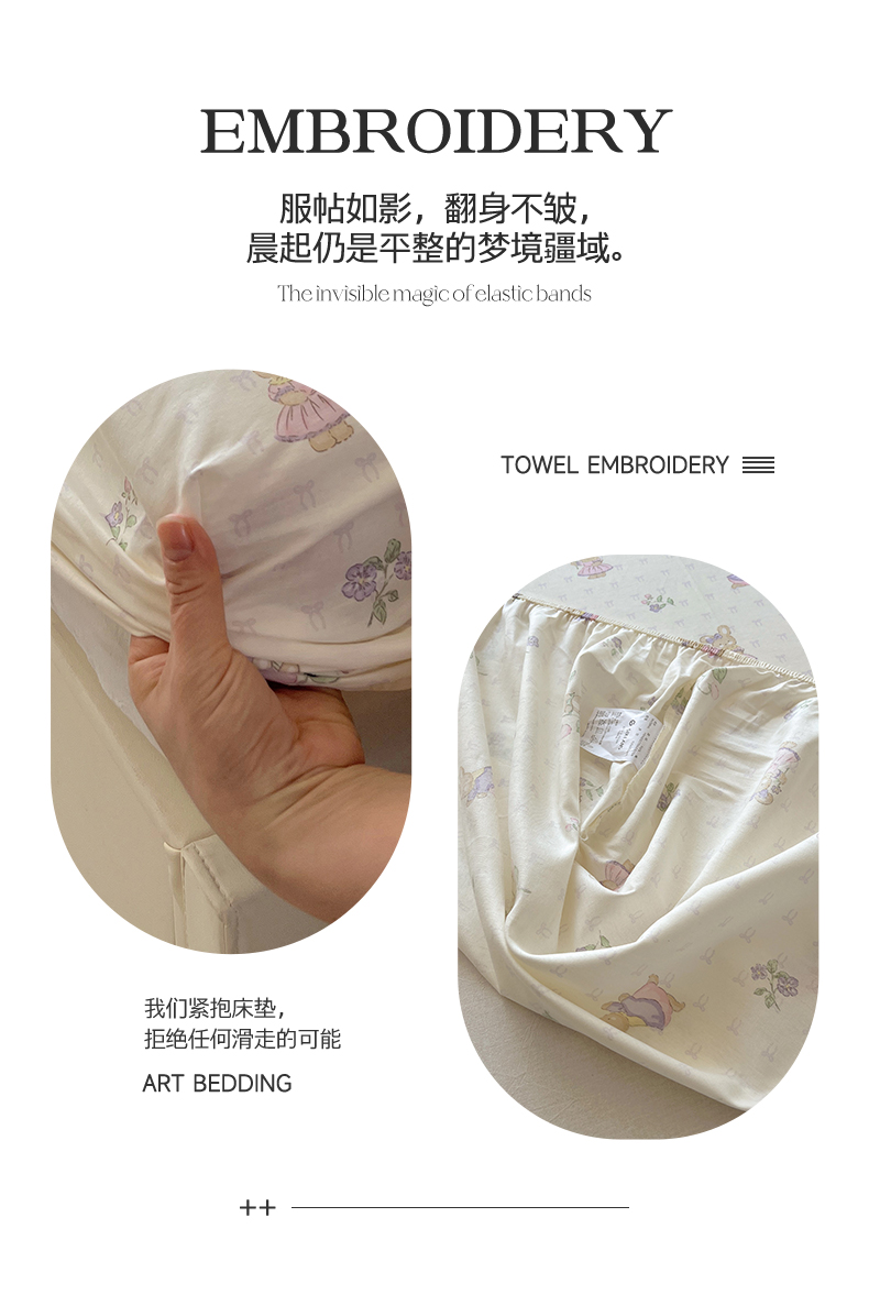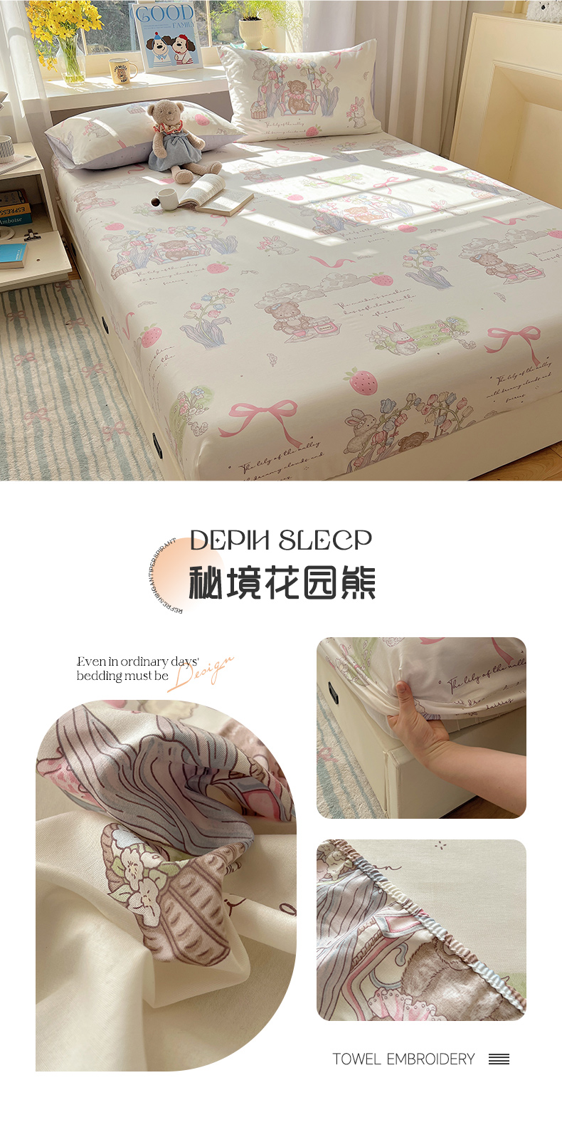 六巷胡同 2026新款40支全棉13070卡通单品床笠 派对害羞狗
