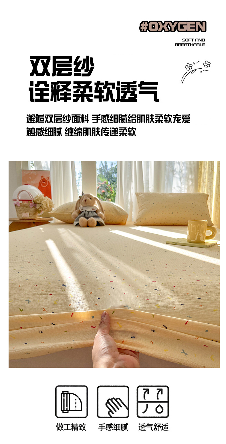 沐芷 2026 【提供买家秀】双层纱A类床笠单件/床笠三件套 床笠款床罩床垫保护套罩 冰淇淋