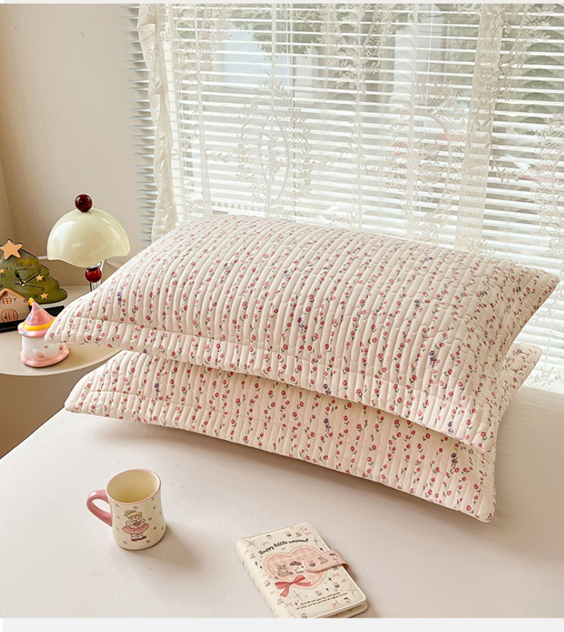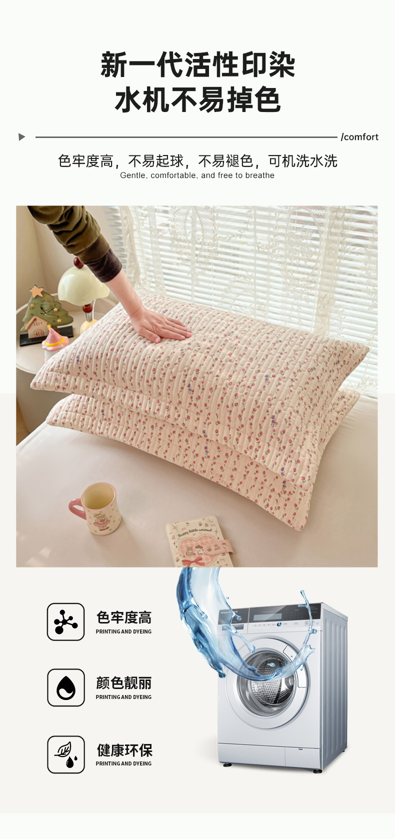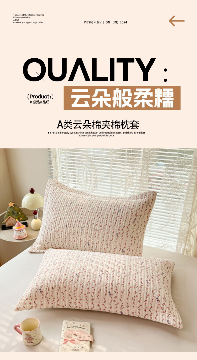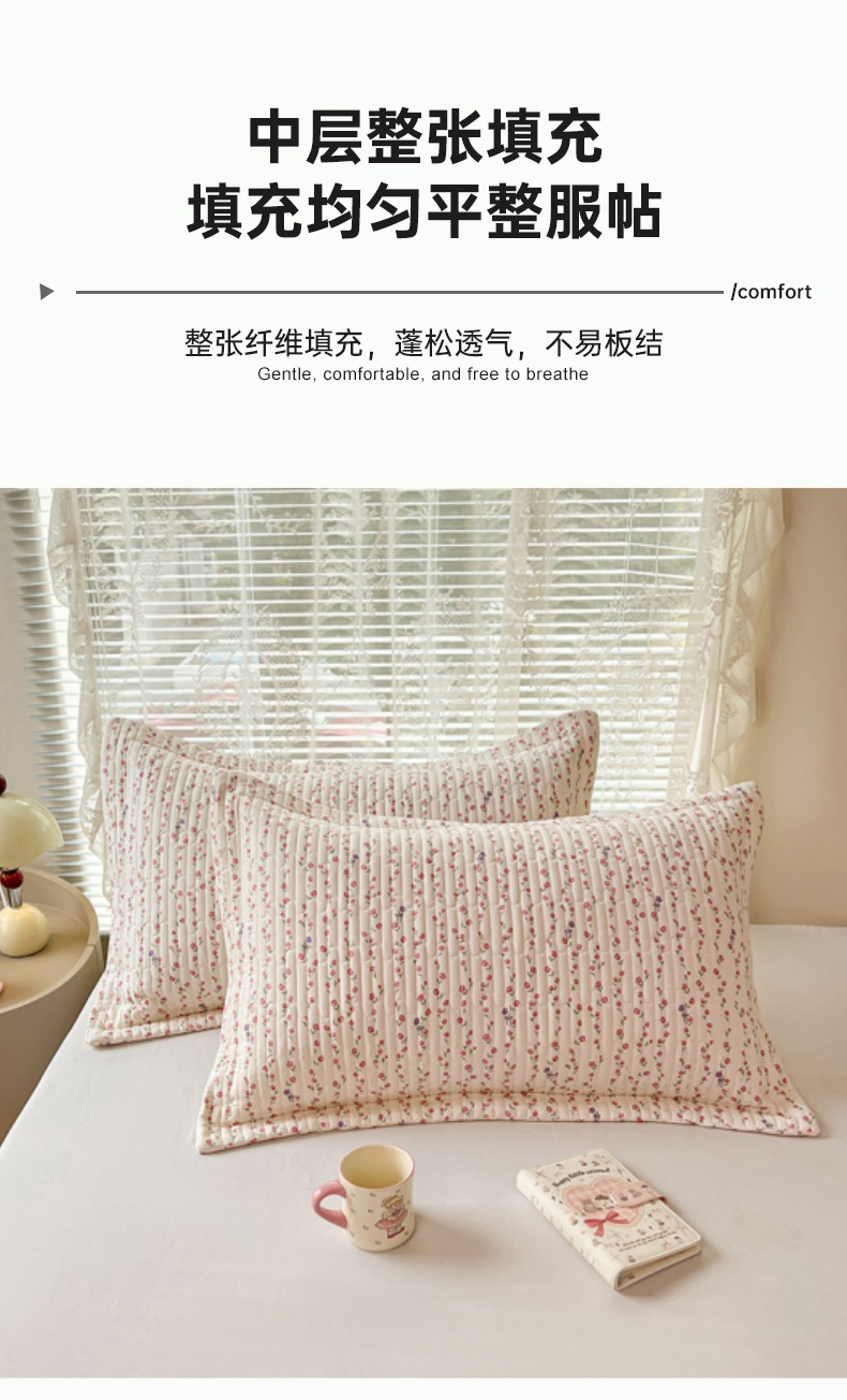 • 91家纺网 家纺一手货源 找家纺 圣比熊 2025新款A类云朵棉夹棉枕套宿舍单人一只装枕芯内胆套-单人枕套 花漾甜心(压线夹棉)