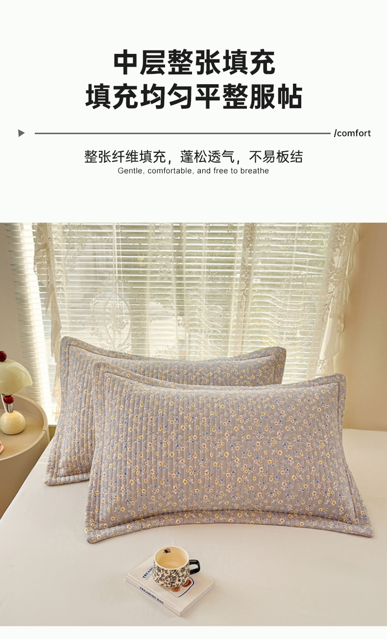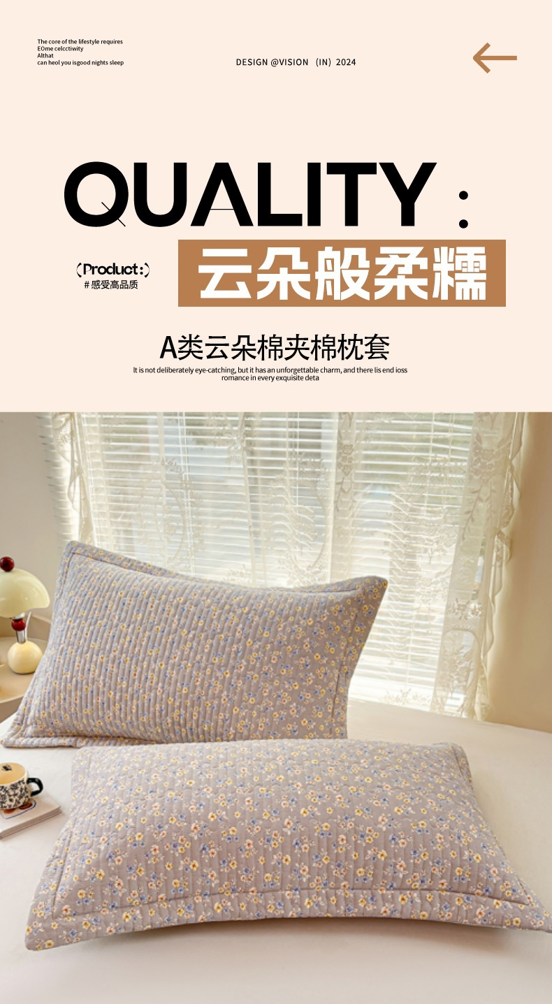 • 91家纺网 家纺一手货源 找家纺 梦舒羽 2025新款A类云朵棉夹棉枕套宿舍单人一只装枕芯内胆套-单人枕套 花无归期(压线夹棉)