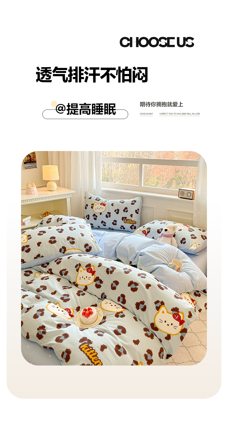 当前位置: 91家纺网 > 商品网购 > 床品套件 > 四件套 > 全棉普通四件套 > 博雅 2026新款全棉纯棉卡通四件套 豹纹小猫-蓝
