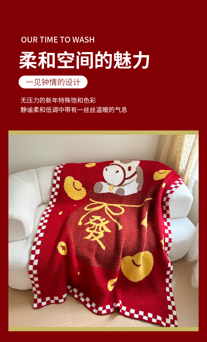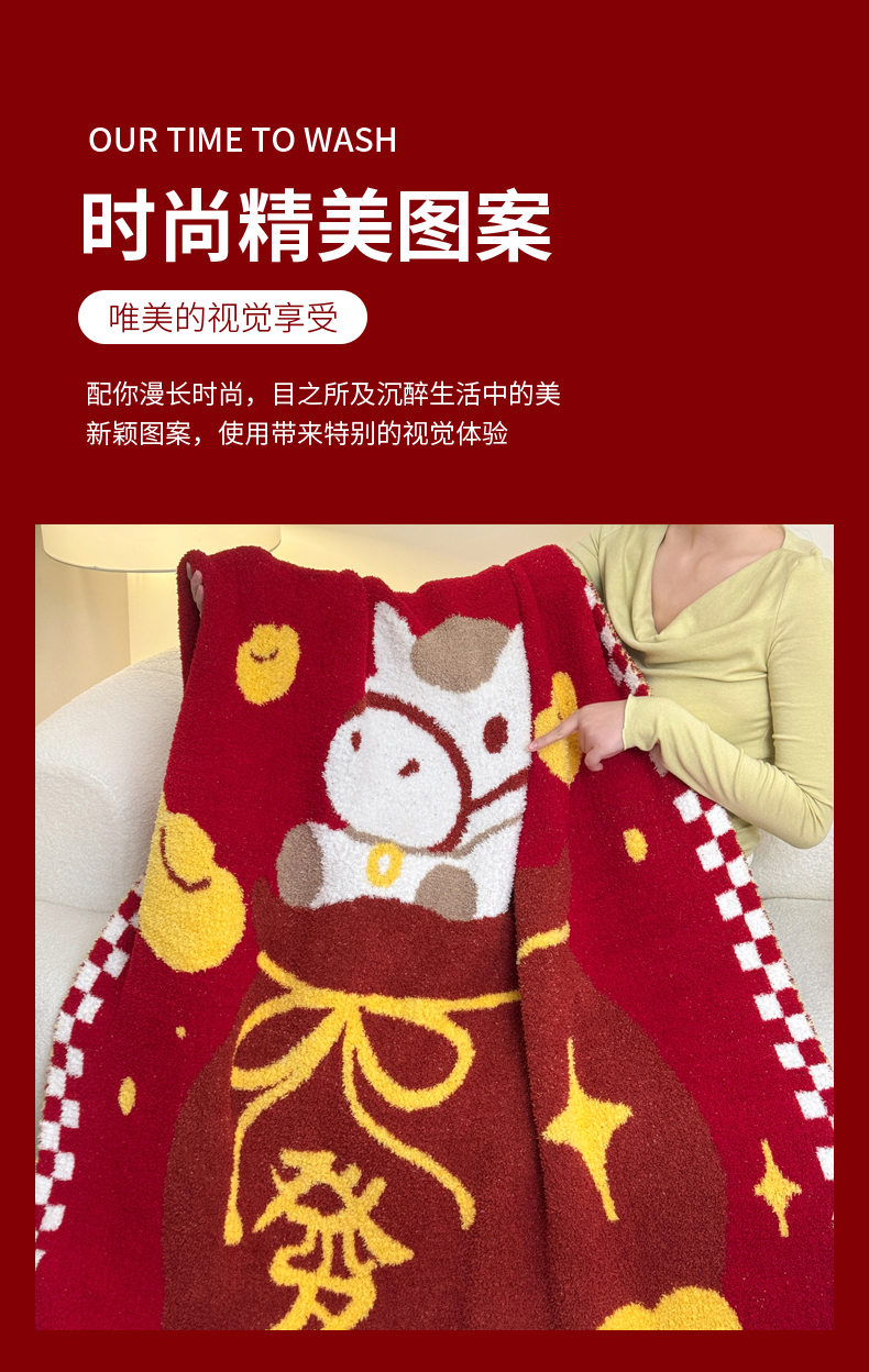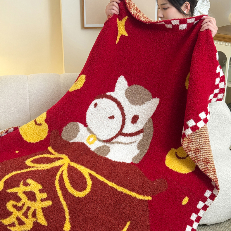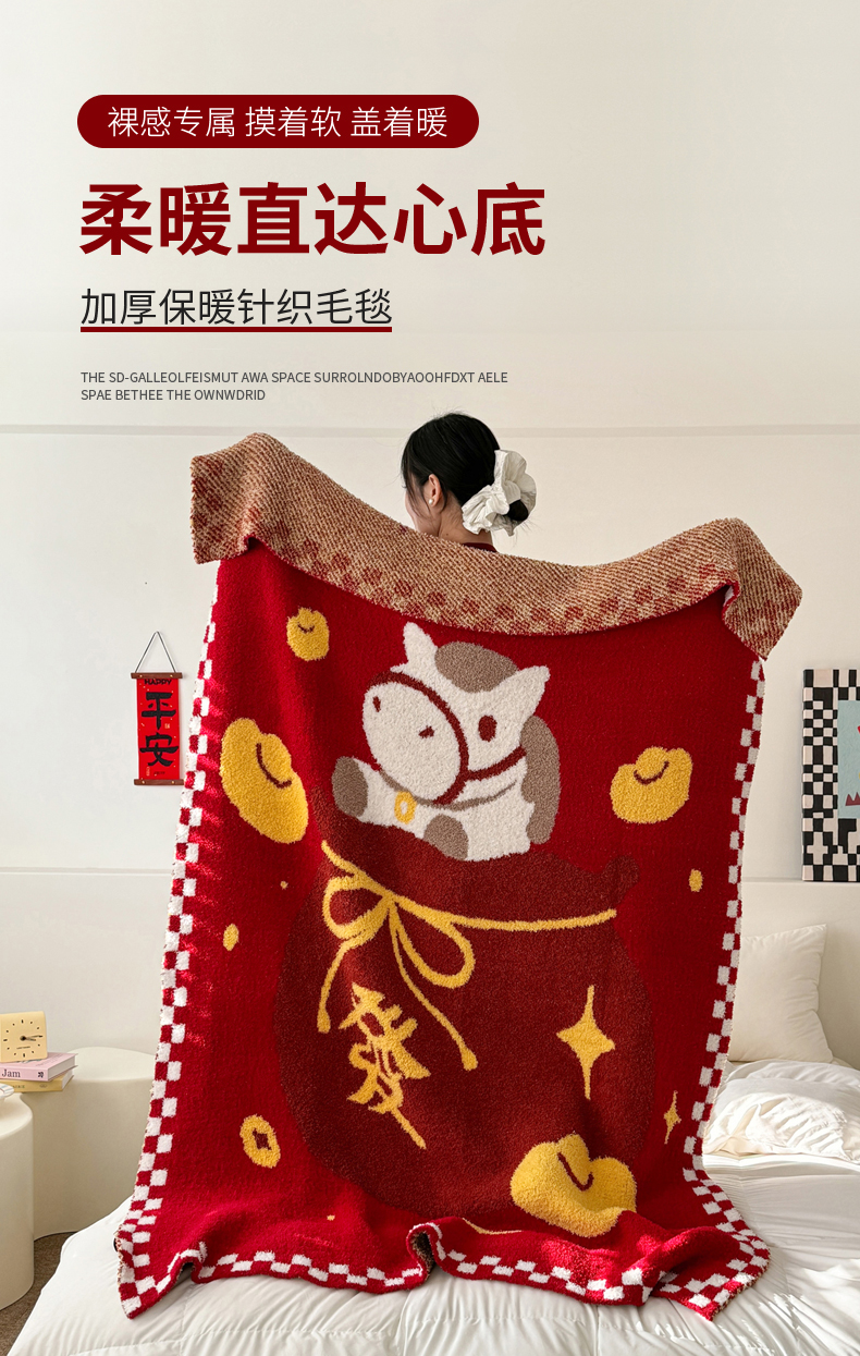 商品名称:(总)丹本家纺 2026新款A类软糯半边绒毛毯毯子马年暖心针织毯