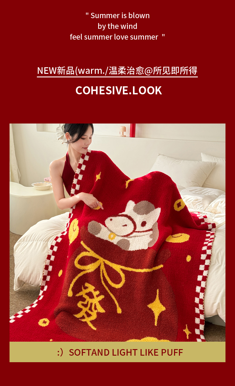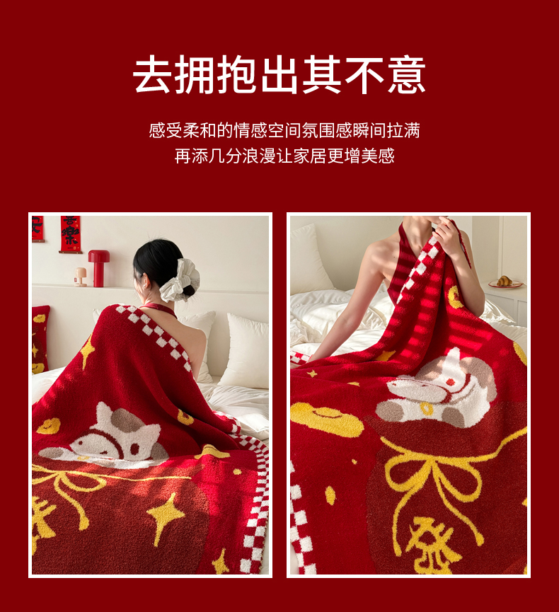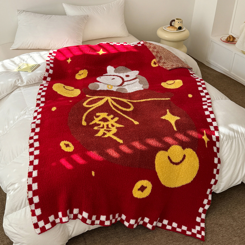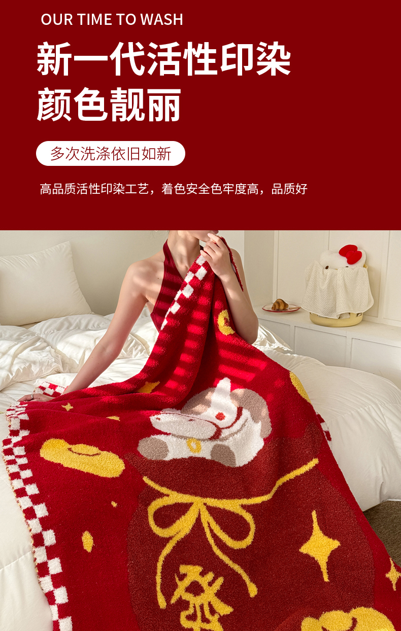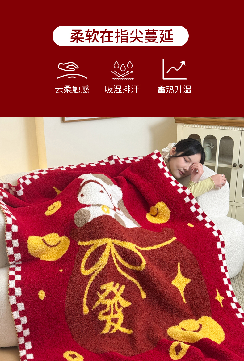 商品名称:(总)丹本家纺 2026新款A类软糯半边绒毛毯毯子马年暖心针织毯