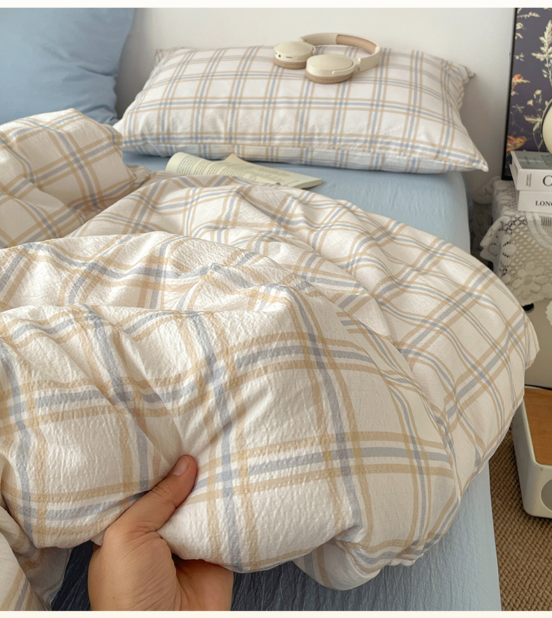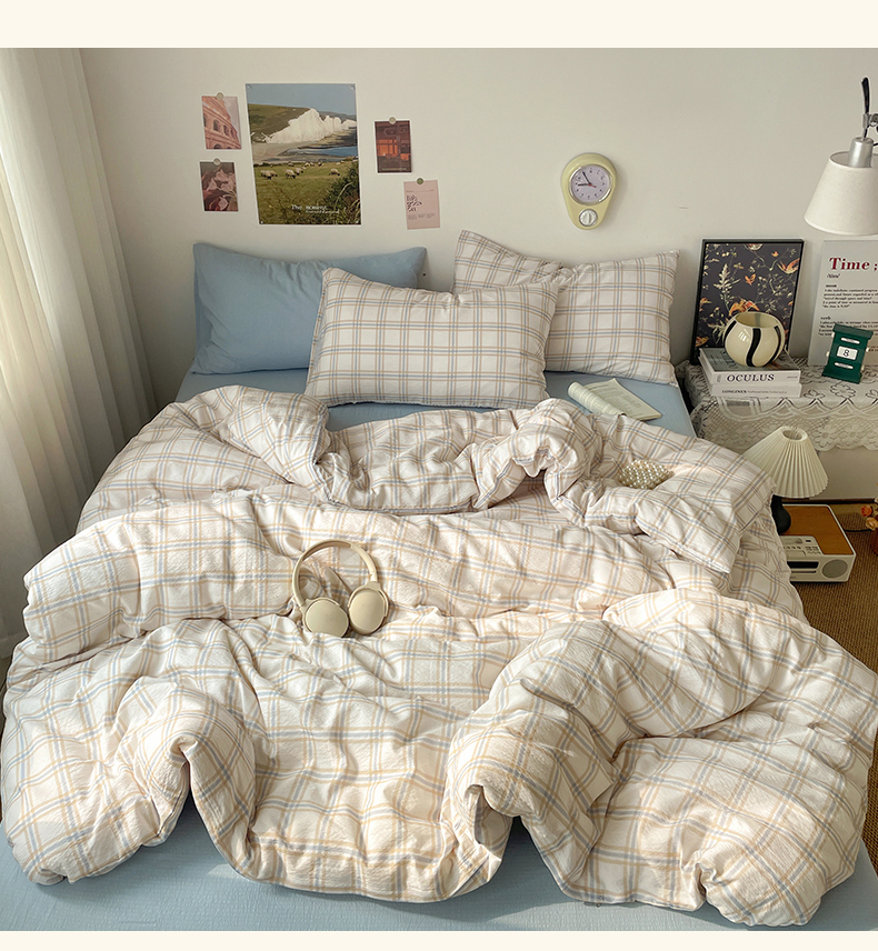 当前位置: 91家纺网 > 商品网购 > 床品套件 > 四件套 > 双层纱四件套 > 海岛哥哥 2026新款双层纱格条系列四件套 简约浅咖格