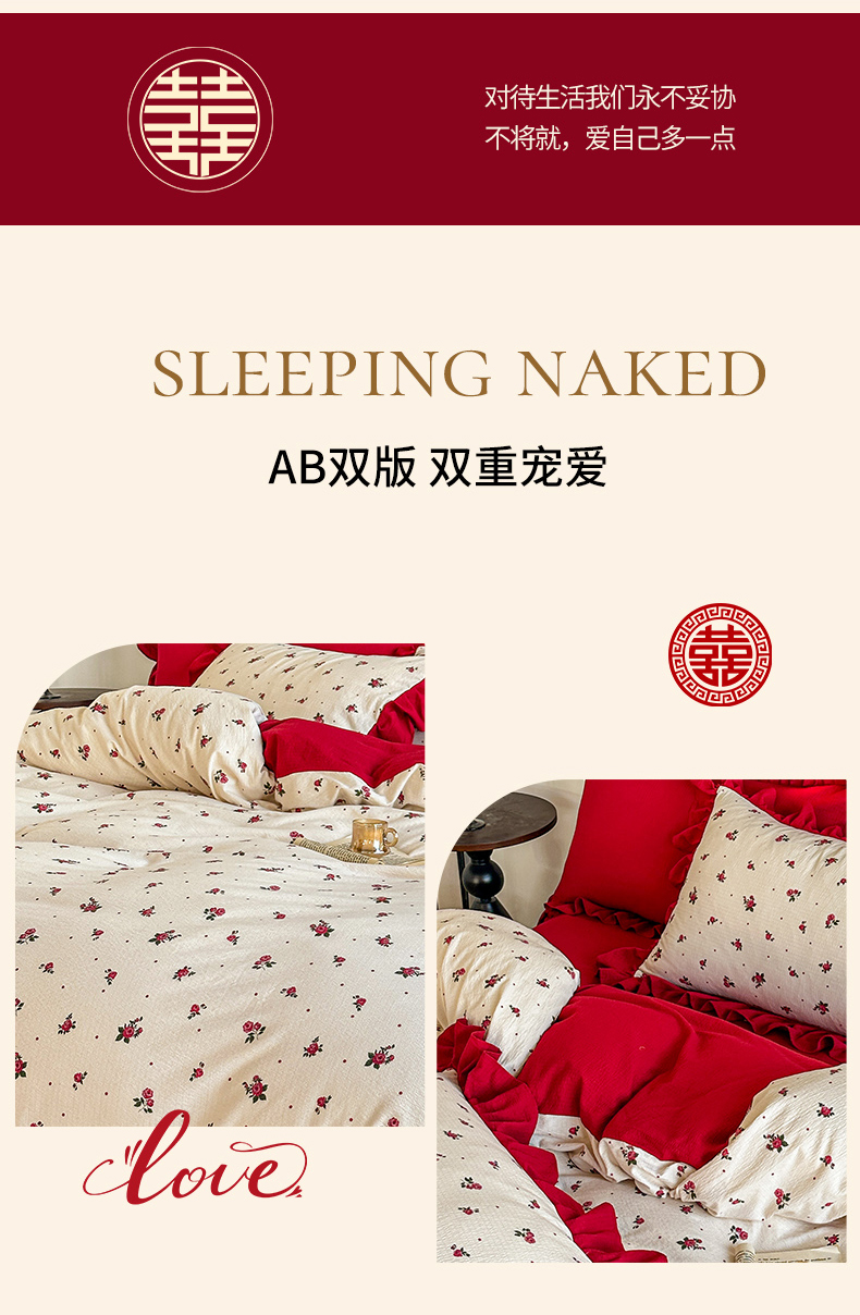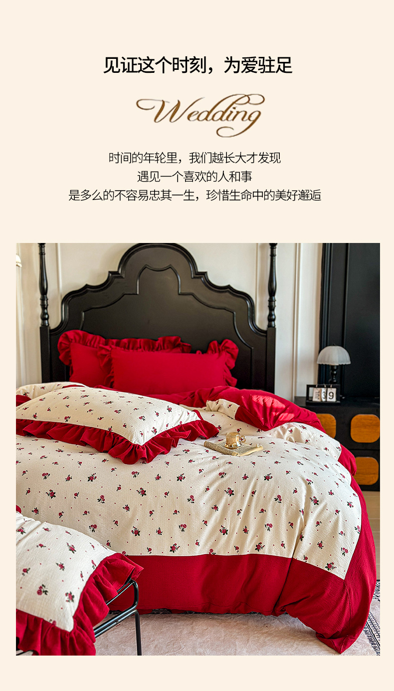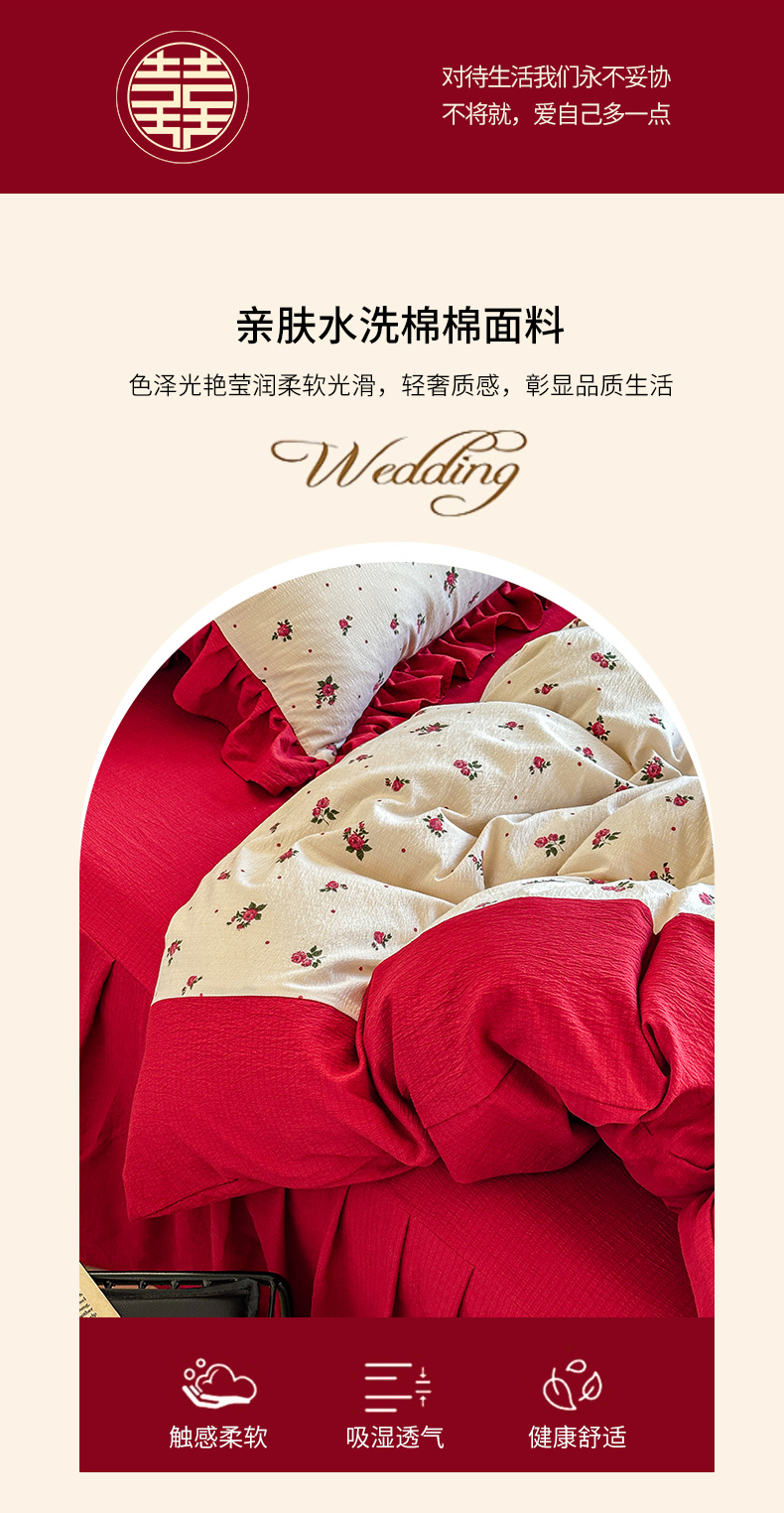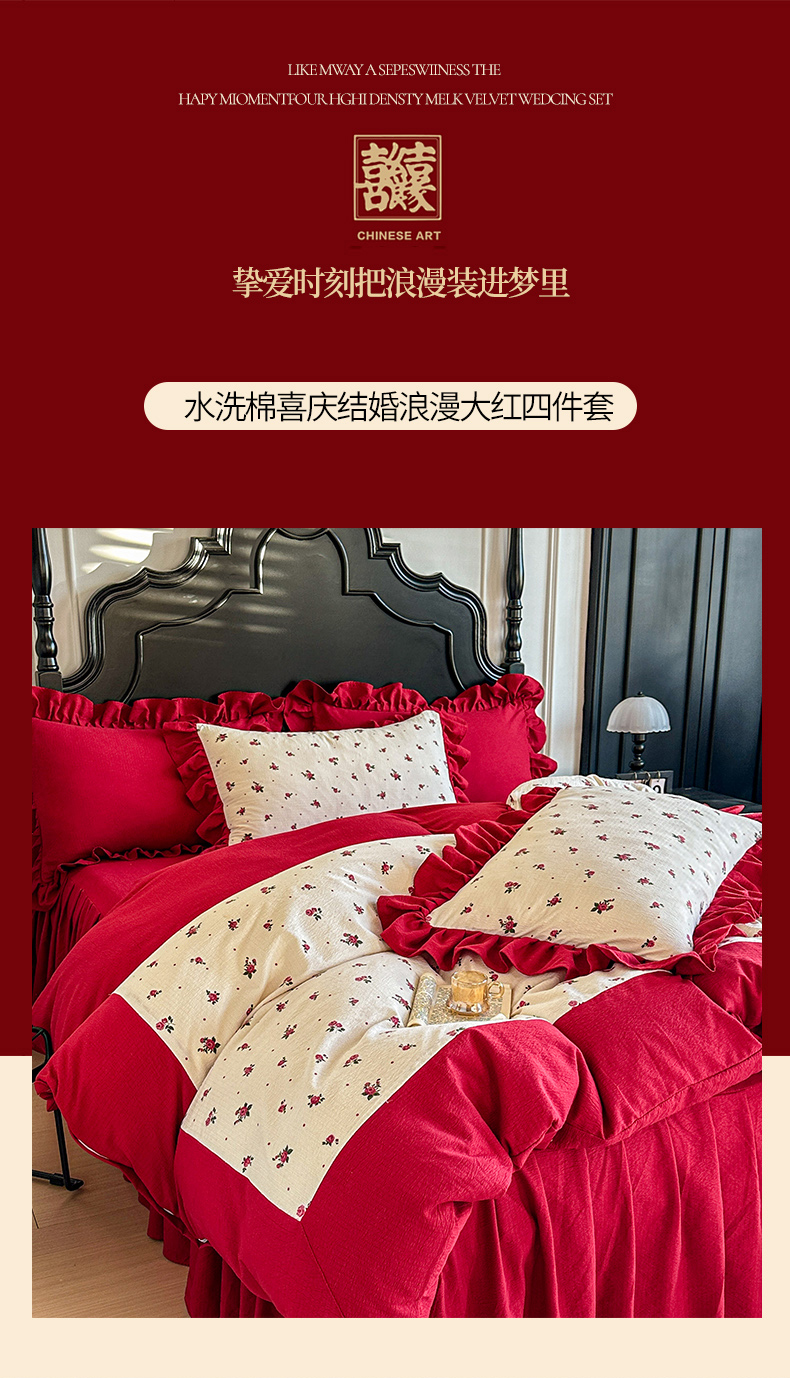 当前位置: 91家纺网 > 商品网购 > 床品套件 > 四件套 > 其它四件套 > 贝凯瑞 2026仿棉皱皱纱双层纱木棉仿棉水洗棉喜庆浪漫大红四件套-锦绣 锦绣良缘