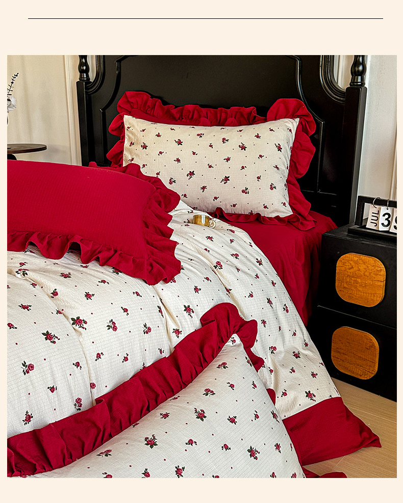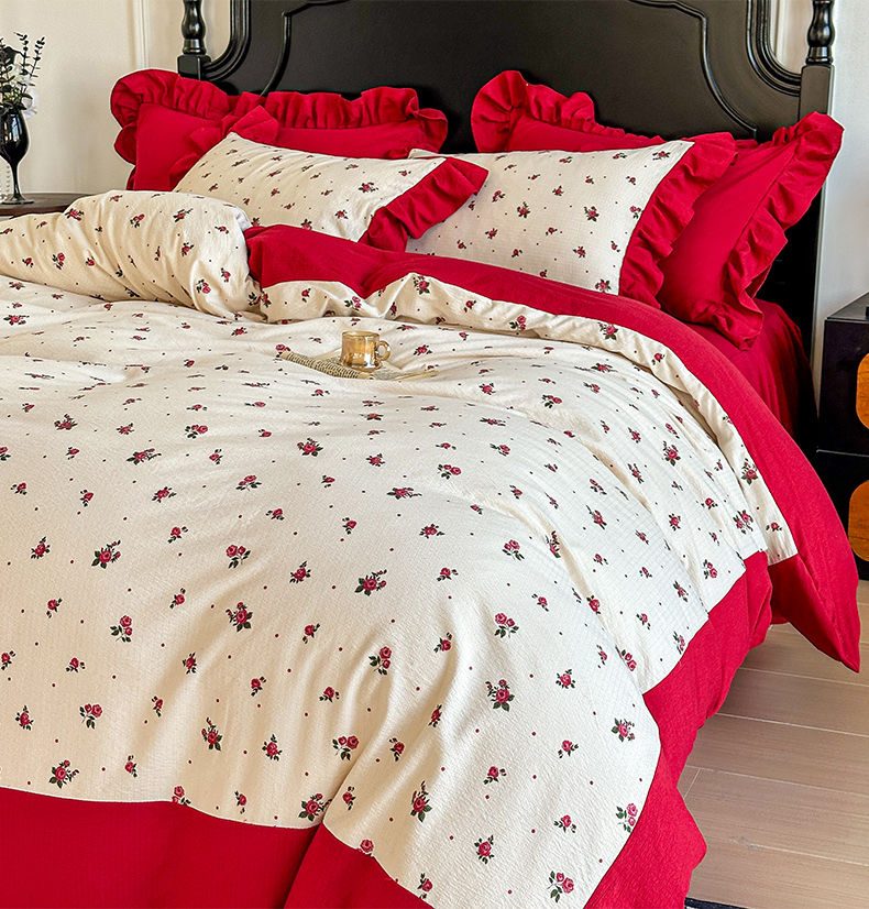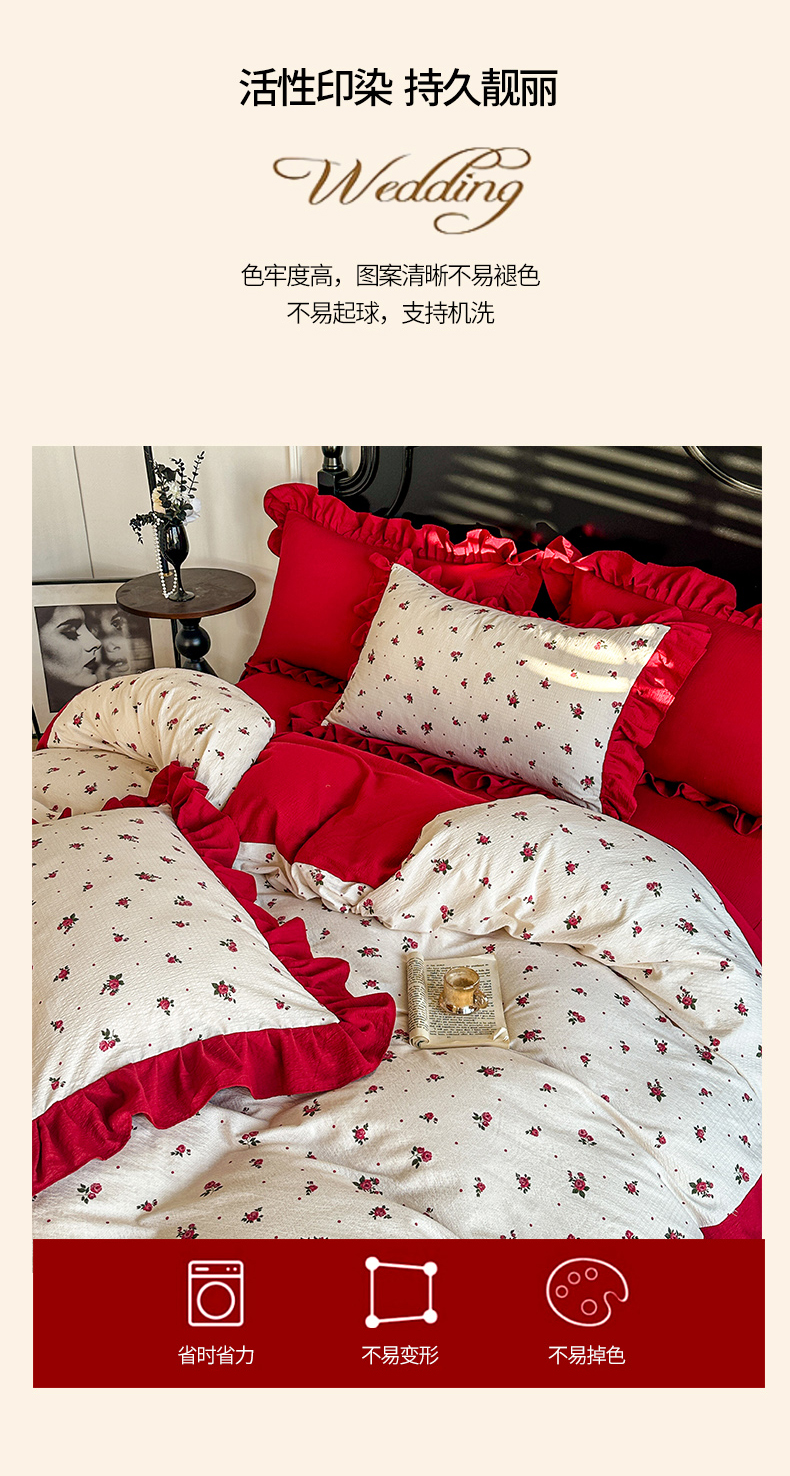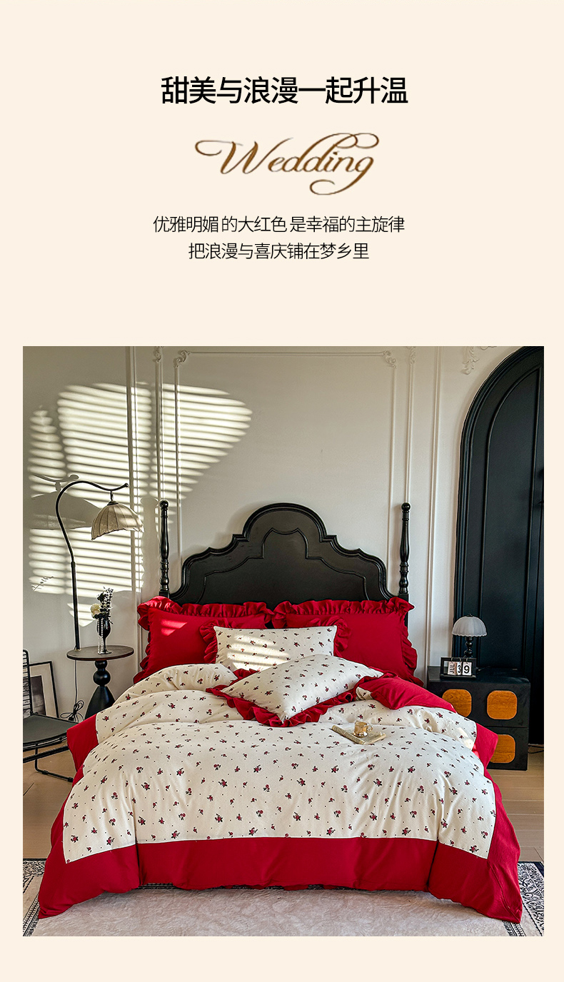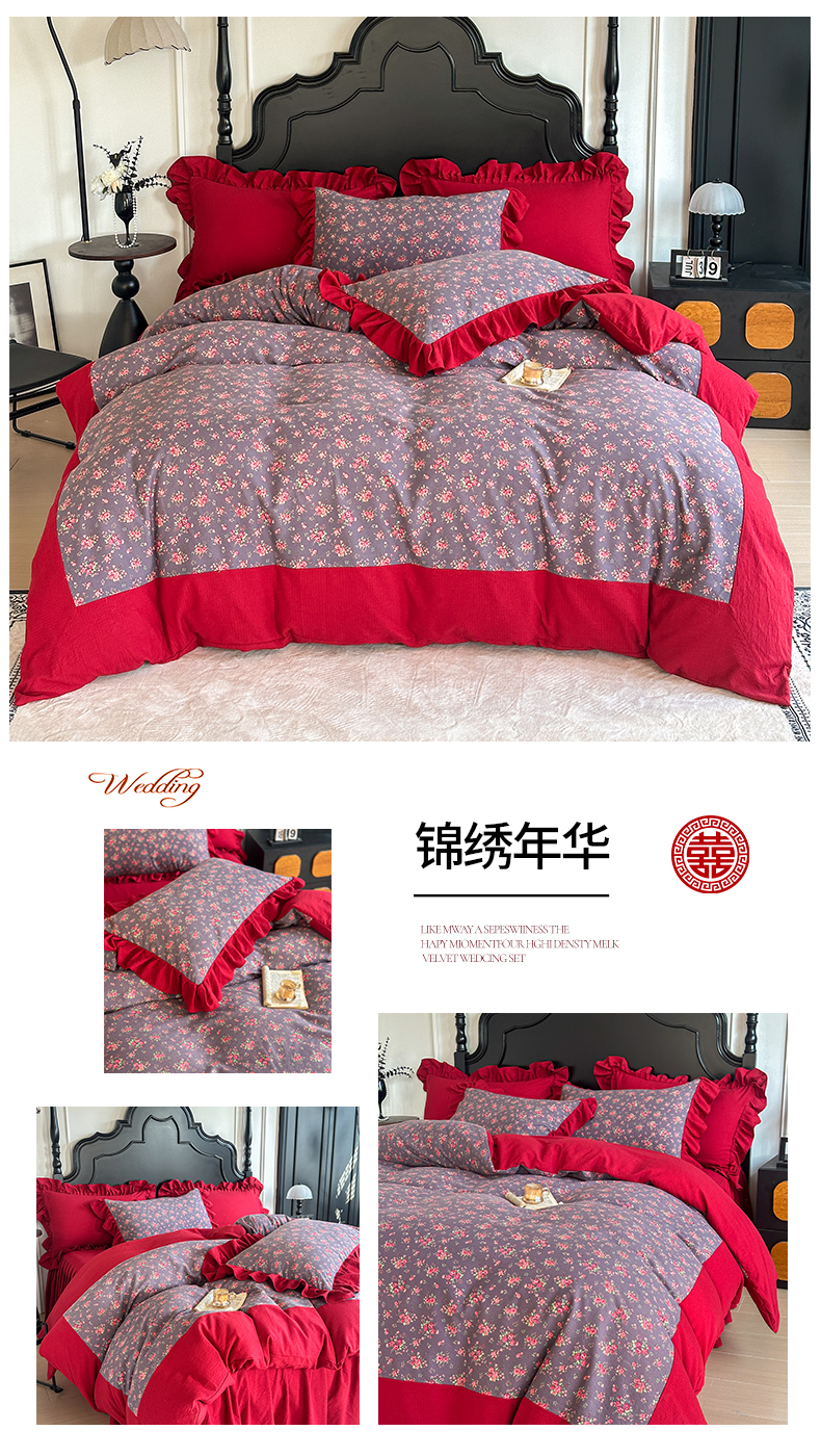 当前位置: 91家纺网 > 商品网购 > 床品套件 > 四件套 > 其它四件套 > 贝凯瑞 2026仿棉皱皱纱双层纱木棉仿棉水洗棉喜庆浪漫大红四件套-锦绣 锦绣良缘
