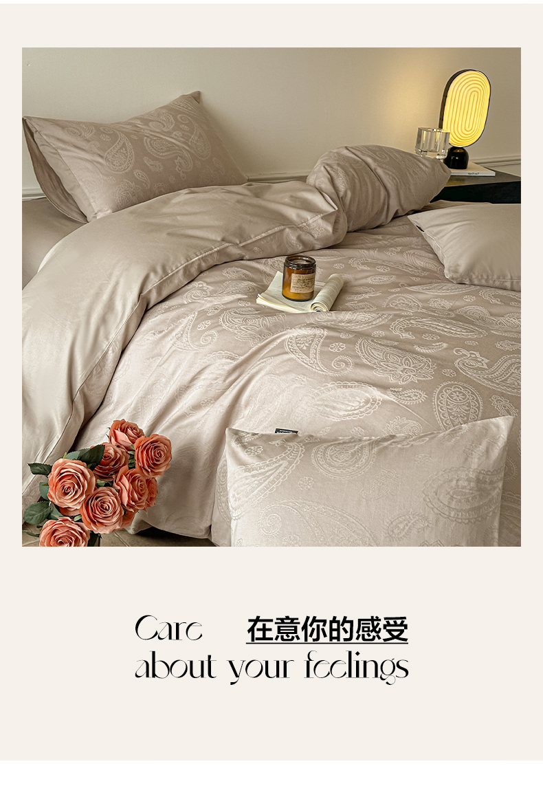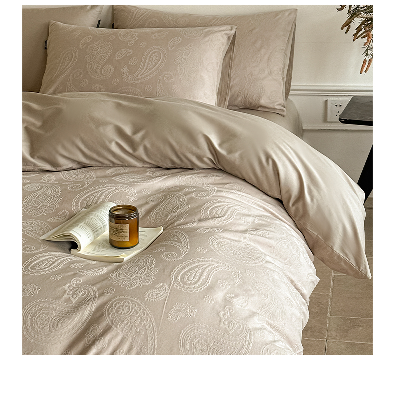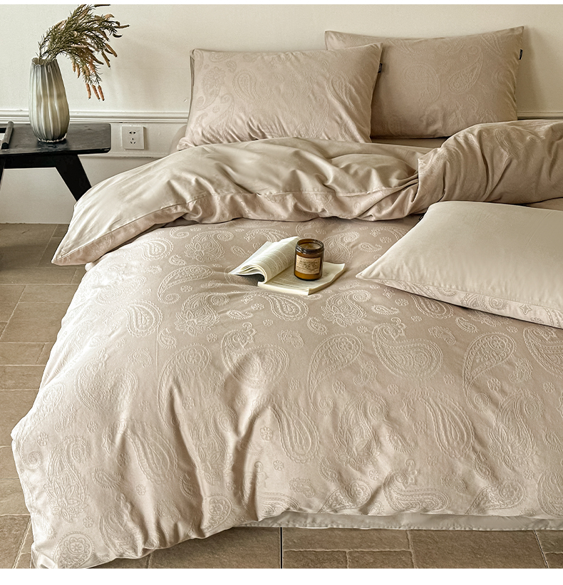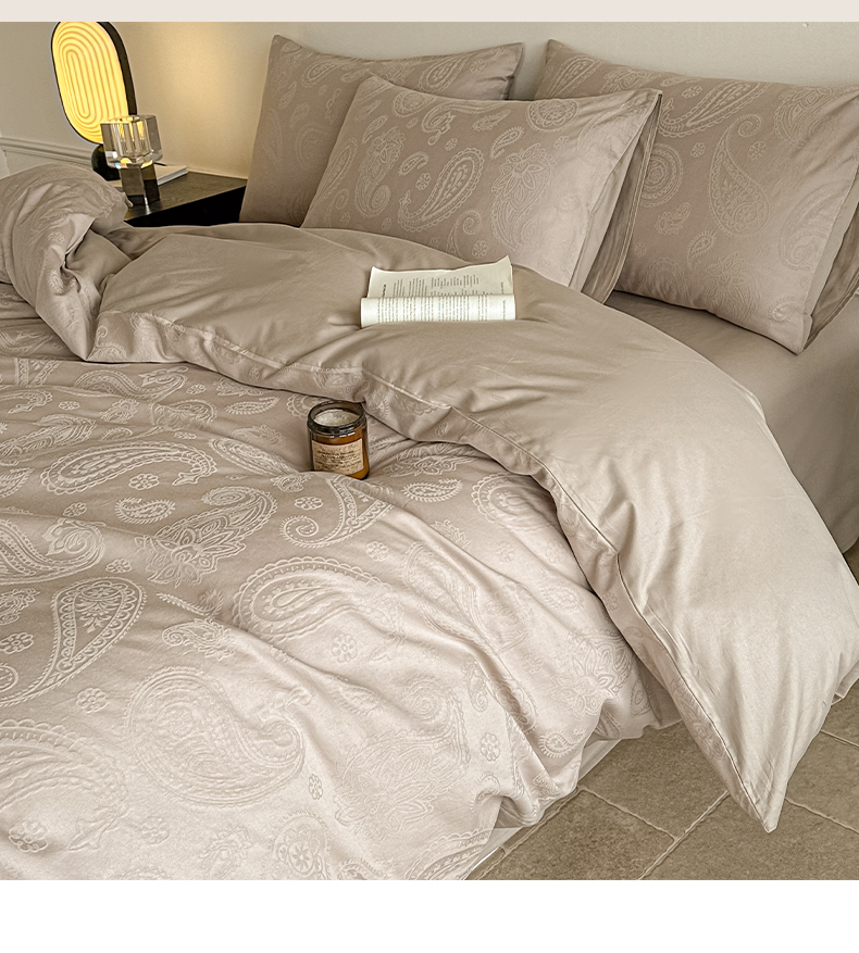 如一 2026新款60S全棉水洗提花立体厚织浮雕四件套 腰果-金属灰
