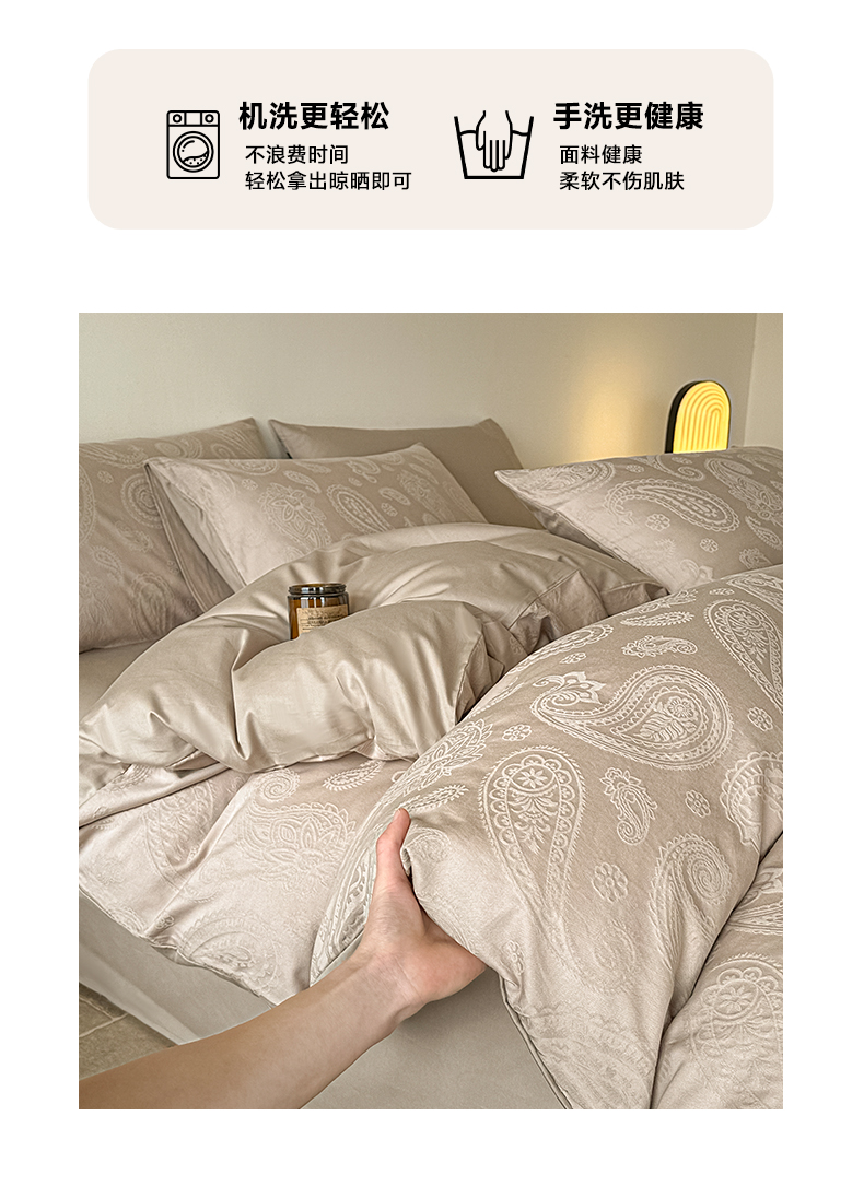商品名称:如一 2026新款60S全棉水洗提花立体厚织浮雕四件套 腰果-金属灰