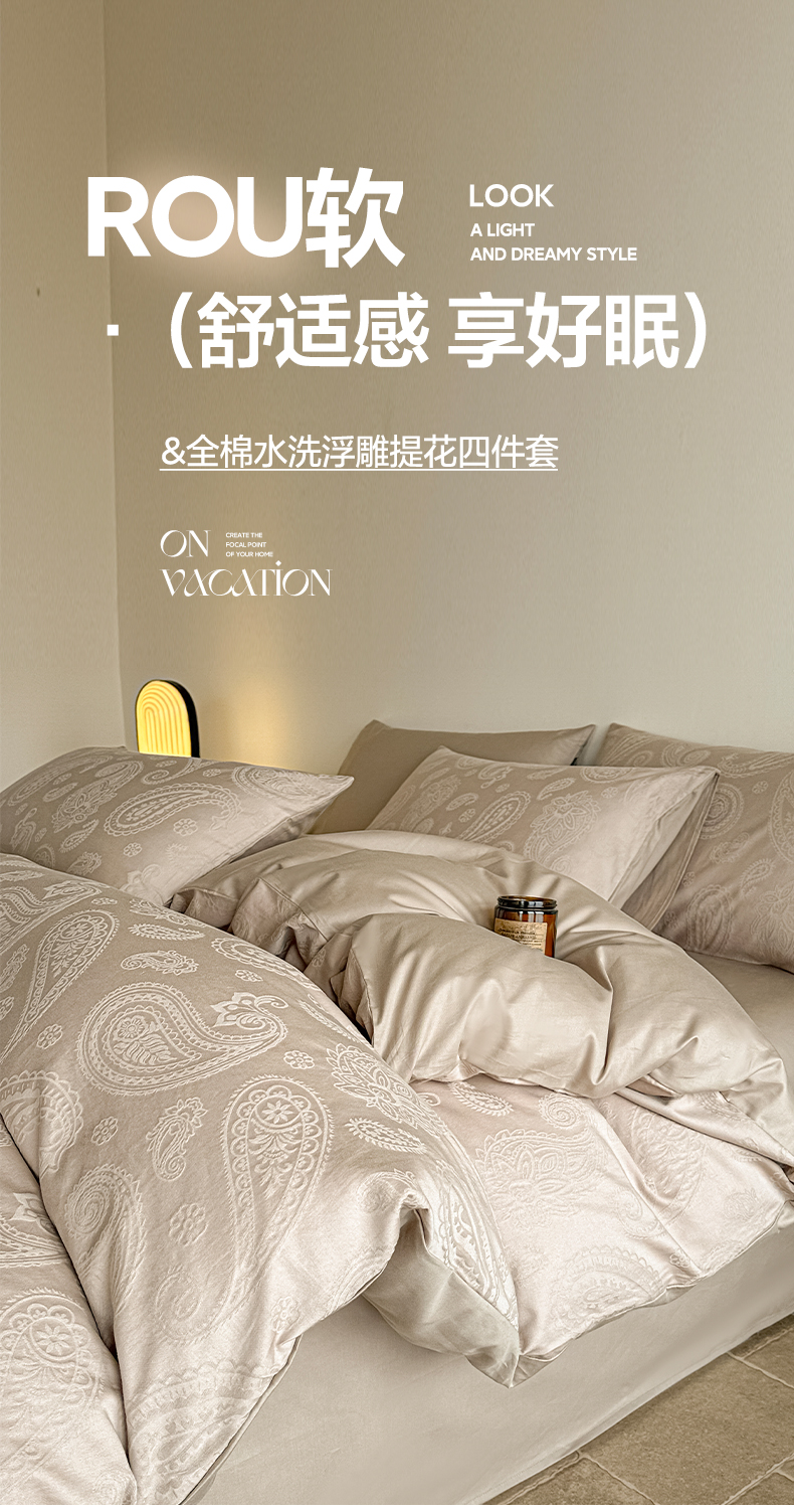 (总)如一 2026新款60S全棉水洗提花立体厚织浮雕四件套,肌理-金属灰,肌理-暖杏米,肌理-雅致银,暗香-唯美粉,蝶梦-湖水绿,蝶梦-唯美粉,花蔓-橄榄绿,花蔓-唯美粉,流年-金属灰,迷蝶-奶米杏,迷蝶-唯美粉,香草-淡雅紫,香草-橄榄绿,香草-奶昔白,腰果-金属灰,腰果-奶米杏,叶韵-云水蓝