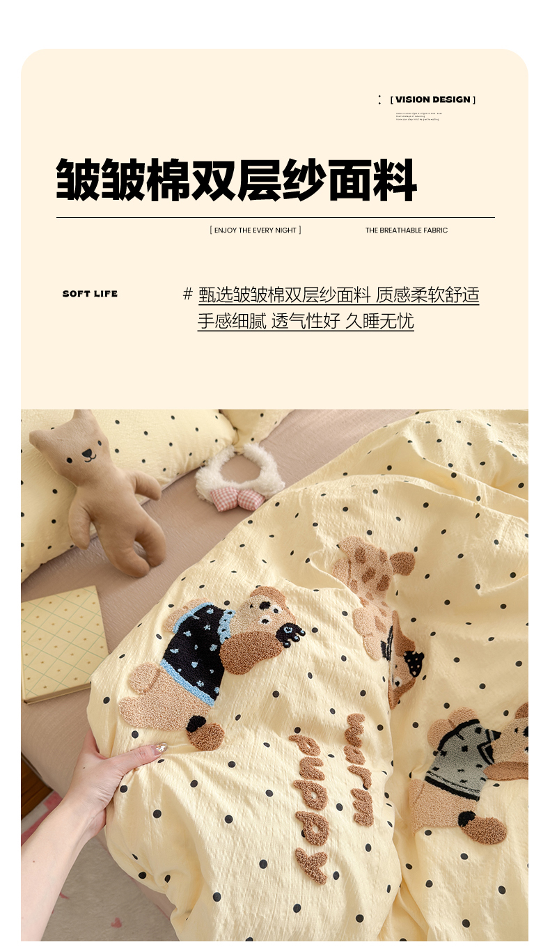 (总)卡斯诺家纺馆 2026新款皱皱棉双层纱四件套(下载文件包含买家秀),花间喵语,午后甜梦,静谧时光,萌趣花梦,蜜桃粉兔,莫奈雅致,泡芙猫咪,温柔蜜语,柔光邂逅,云影星斑-粉,云影星斑-咖,紫韵流光