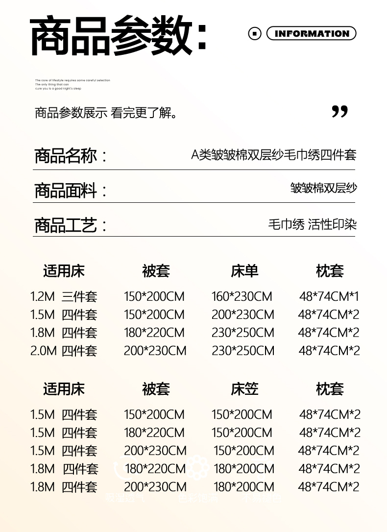 商品名称:(总)卡斯诺家纺馆 2026新款皱皱棉双层纱毛巾绣四件套(下载文件包含买家秀)