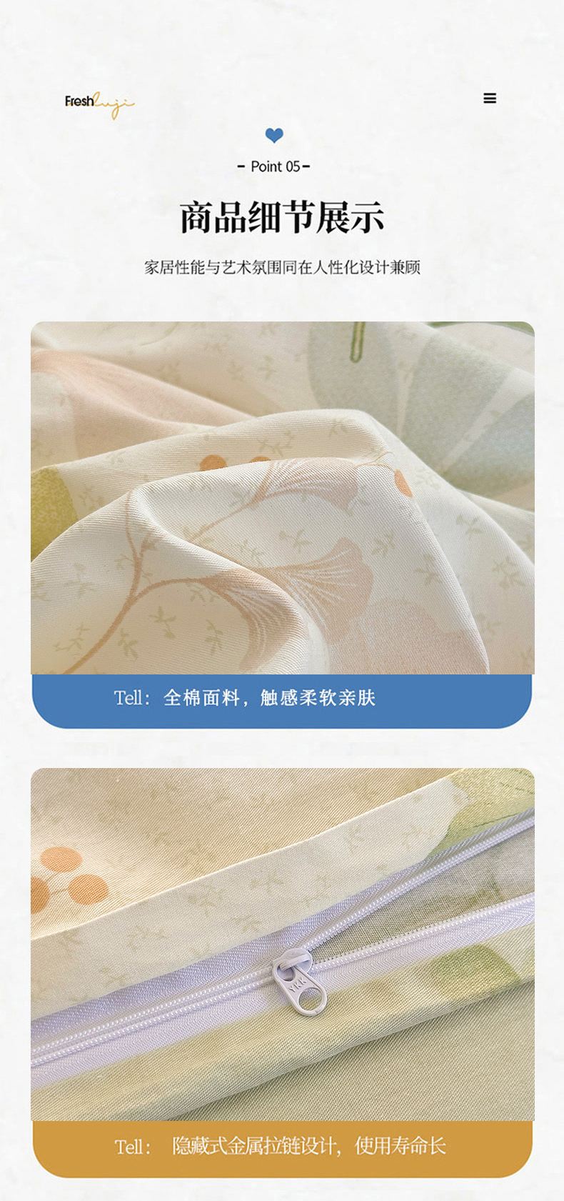 商品名称:乐童家纺 2026新款全棉网红直播爆款吊边一字绣工艺款四件套-系列二 银杏疏影