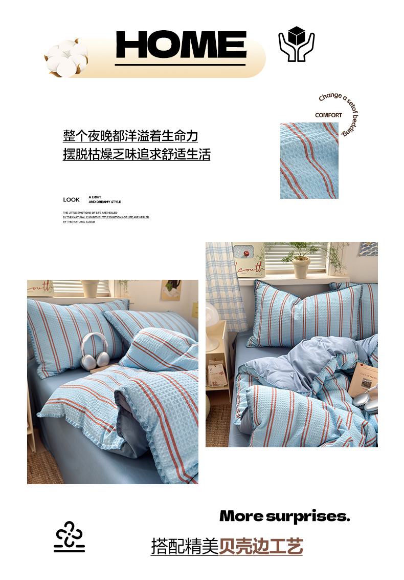 商品名称:(总)曼之夏 2026新款A类全棉华夫格提花贝壳边四件套