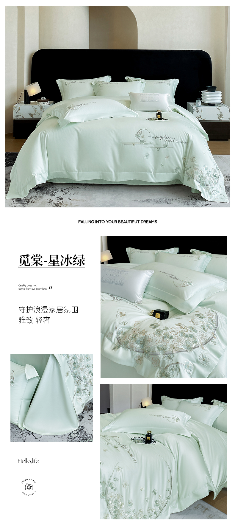 (总)欣宜家纺 2026春夏新款60支A类新疆长绒棉刺绣轻奢风四件套,樱花-白粉,樱花-清香绿,樱花-少女粉,樱花-天天蓝,樱花-香芋紫