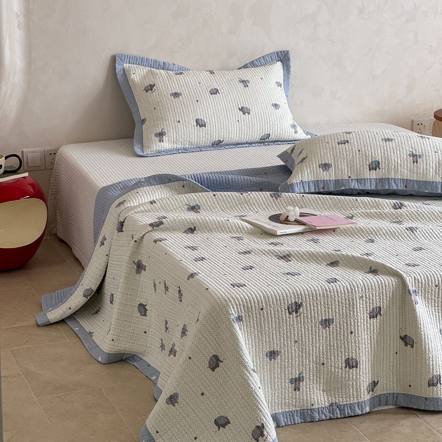 (总)床盖工厂店 2026新款全棉卡通纱布床盖三件套,斑点象 粉,斑点象 兰,嘟比熊,萌星 黄,趣梦鹅 黄,趣梦鹅 绿