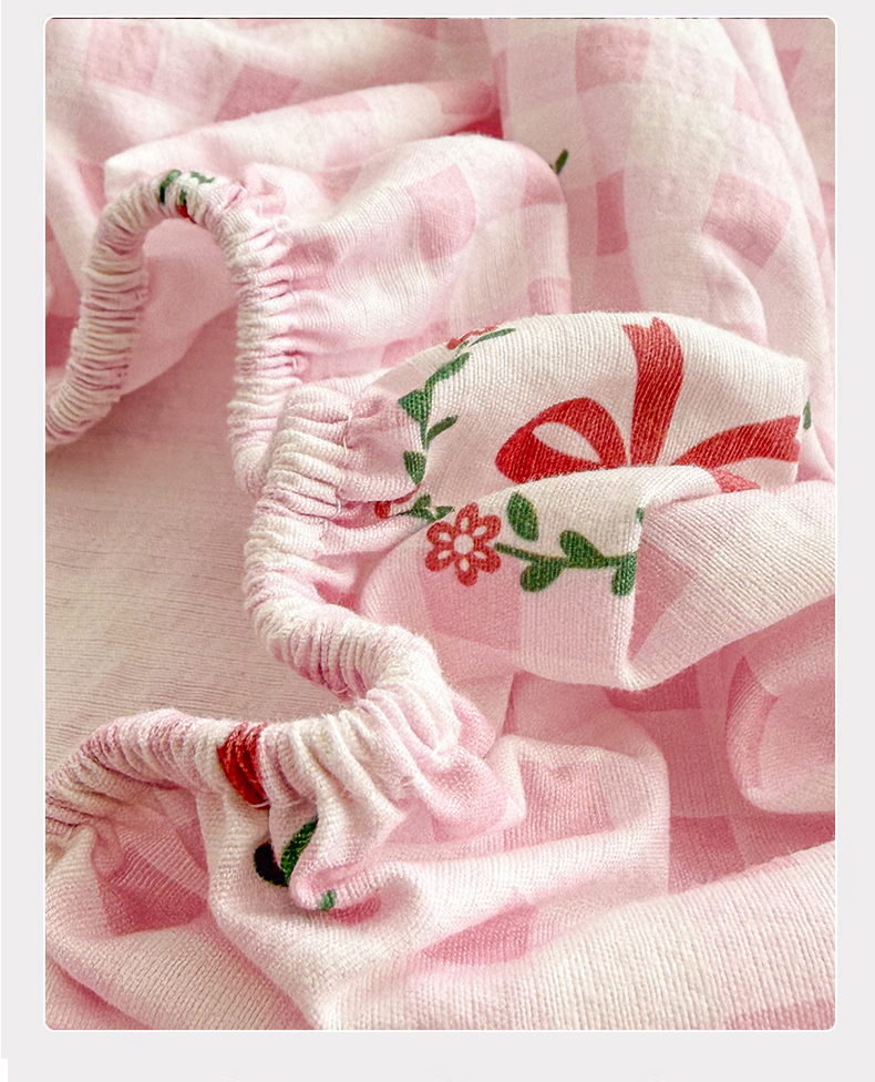丽美人家纺 2026新款A类柔软双层皱皱纱印花单床笠床笠单件 格子蝴蝶结