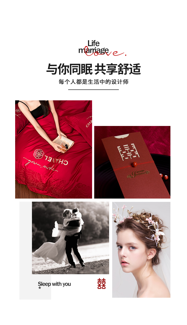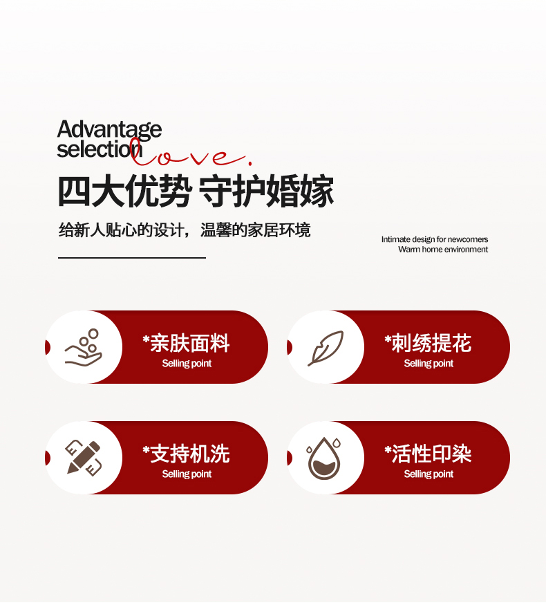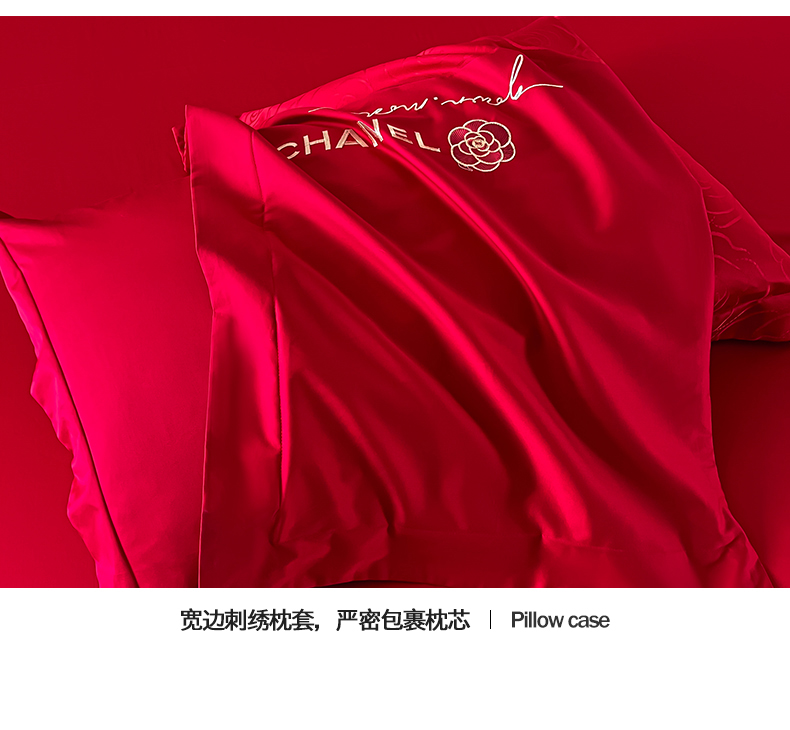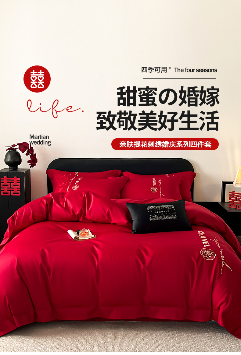 商品名称:置顶家纺 2026新款喜至亲肤提花刺绣婚庆系列四件套 初遇-酒红