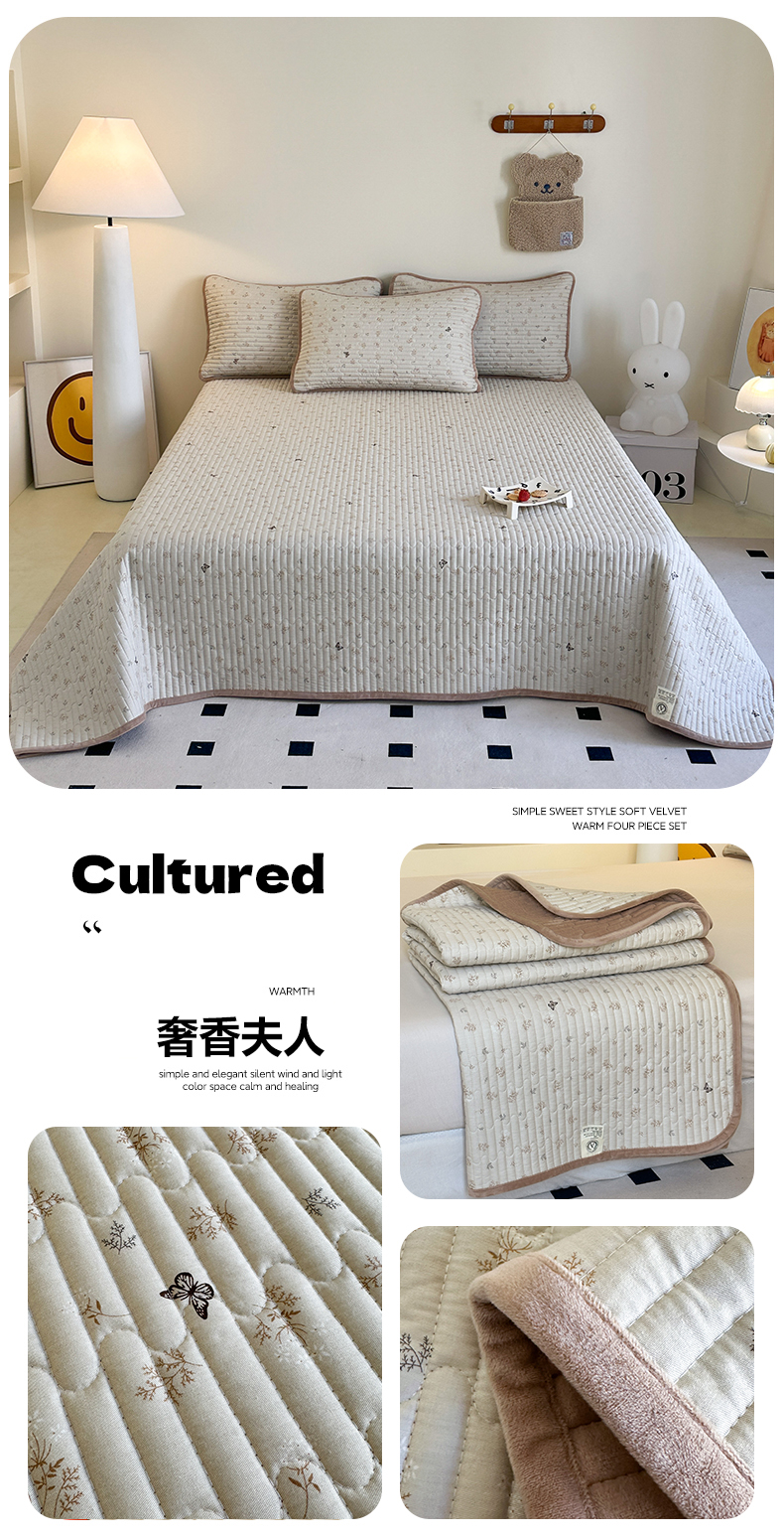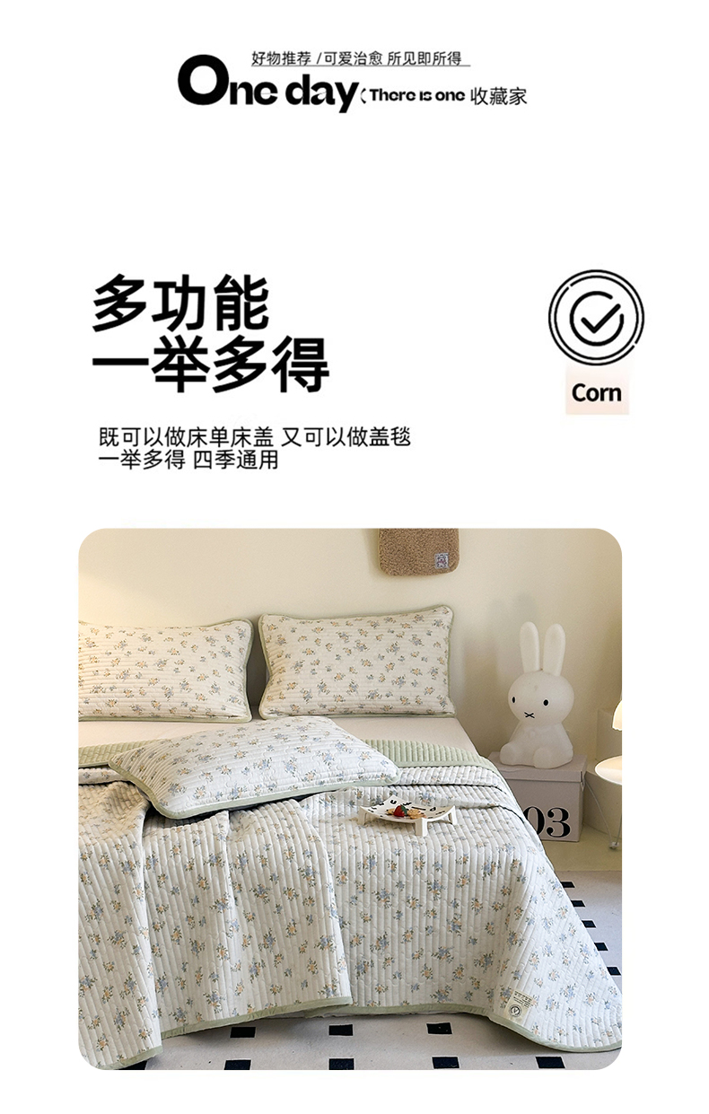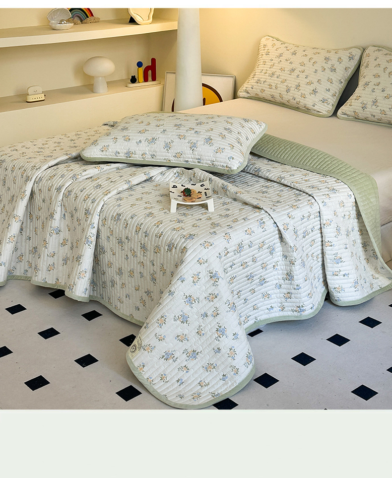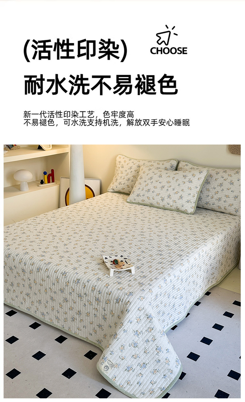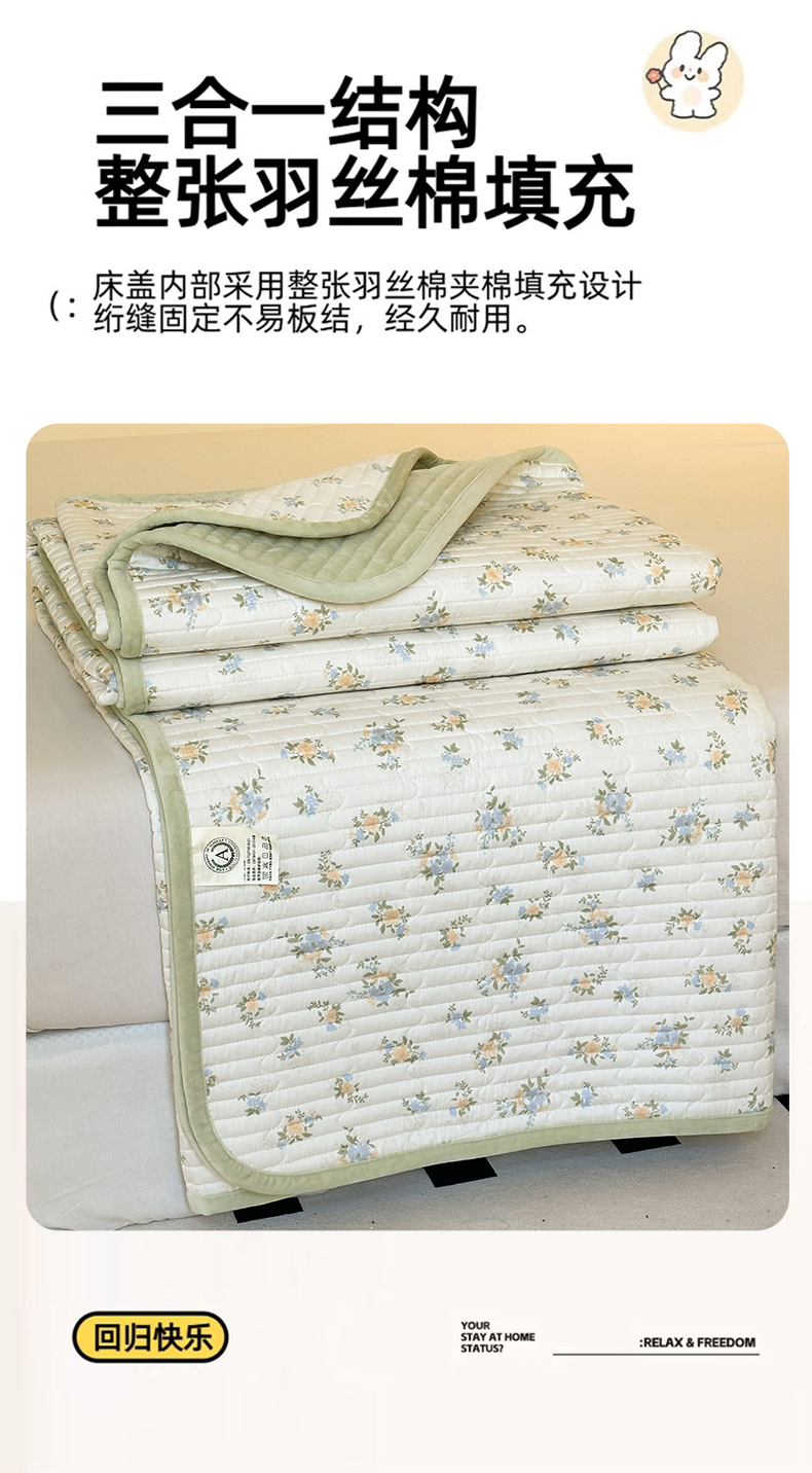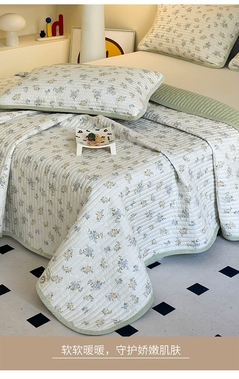 • 91家纺网 家纺一手货源 找家纺 凌云家纺 2026新款A类13372全棉床盖一面棉一面绒 沐雅清风