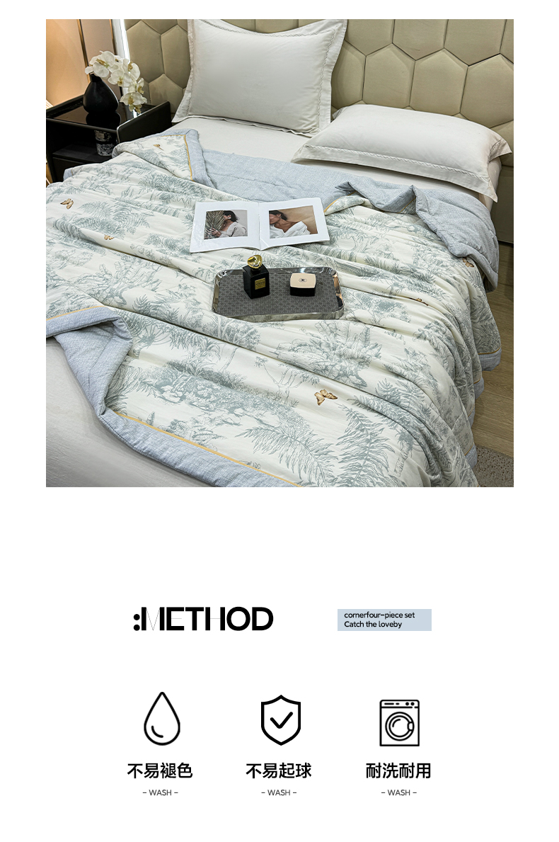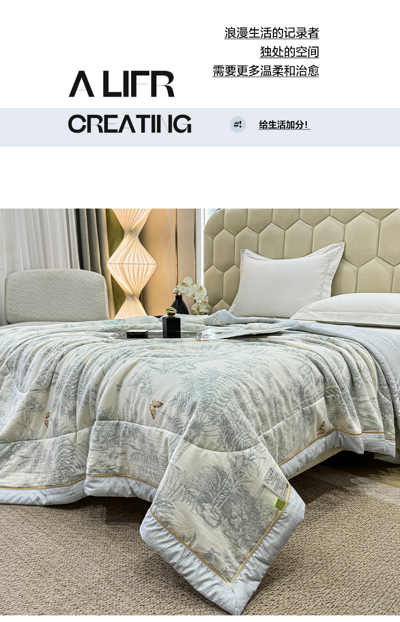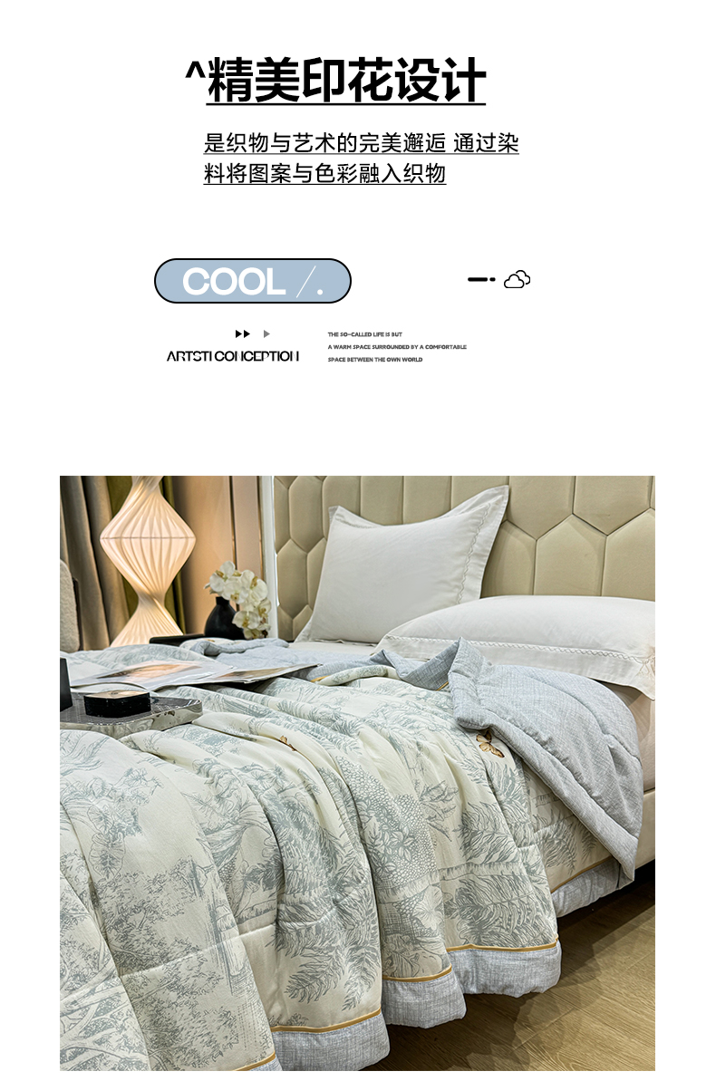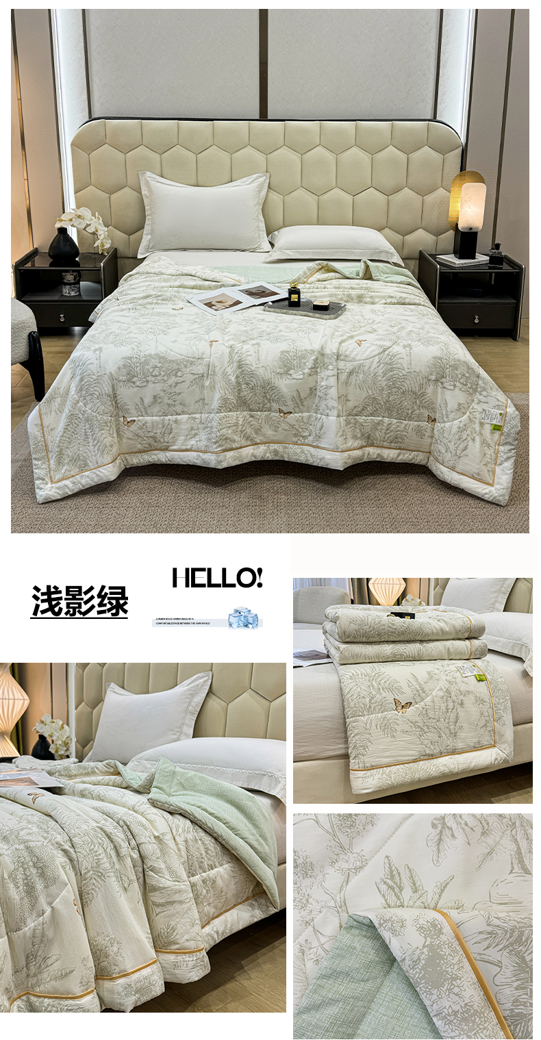 (总)心悦家纺 2026新款柔丝绵印花夏凉被空调被夏被系列,浅影兰,浅影绿,古典灰,烂漫花季