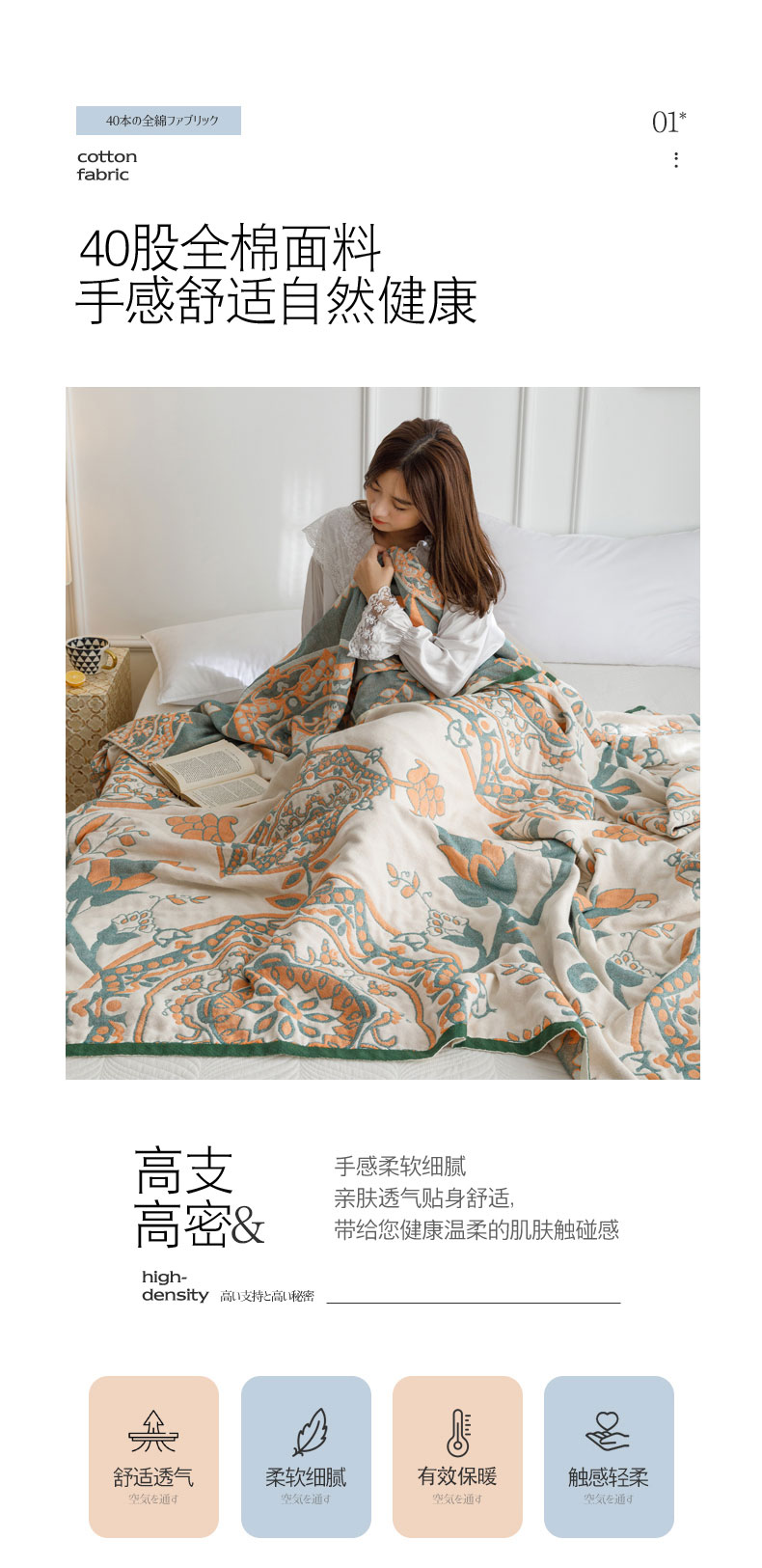 商品名称:朴尔家纺-毛巾被 2026春夏新款水洗全棉纯棉四层细纱系列毛巾被下班夏凉被空调被 铃兰香-橘毛巾被