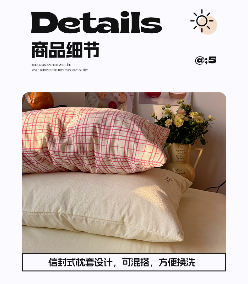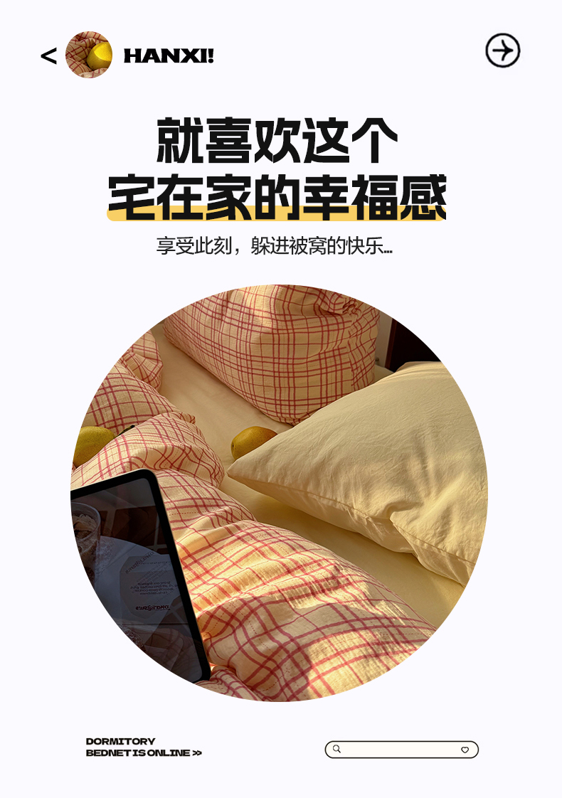 (总)轻奢坊 2026新款云感仿棉水洗棉褶皱短花边四件套,花花格粉,花花格黄,花花格蓝,花花格紫