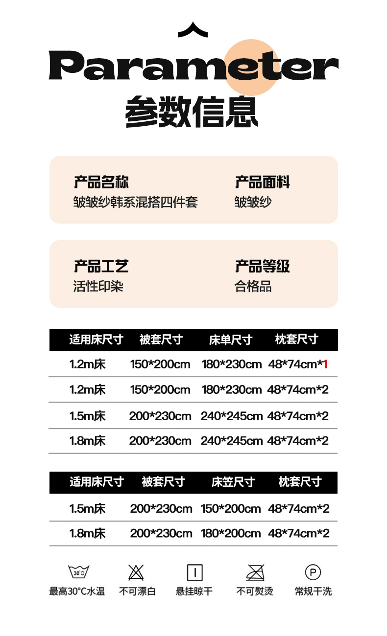商品名称:轻奢坊 2026新款皱皱纱水洗棉韩系混搭四件套 碱冰结
