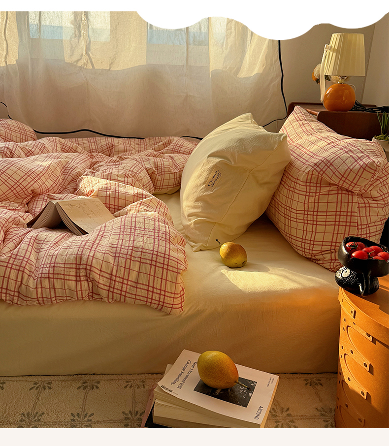 (总)轻奢坊 2026新款皱皱纱水洗棉韩系混搭四件套,格蕾粉,碱冰结,莓果结,樱桃结