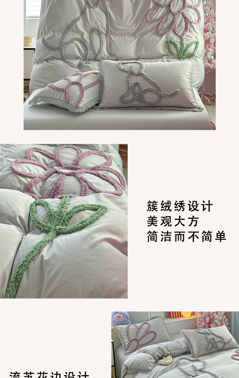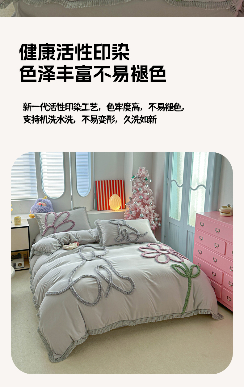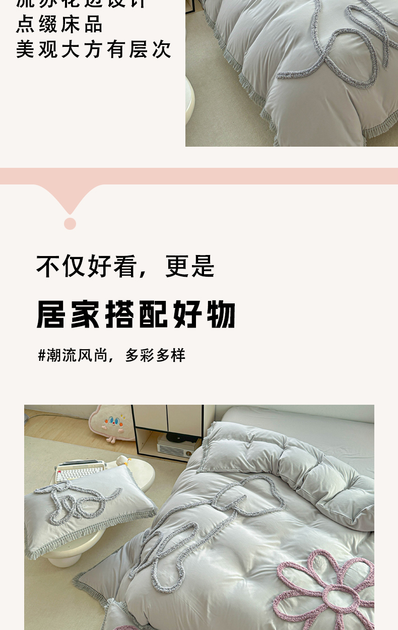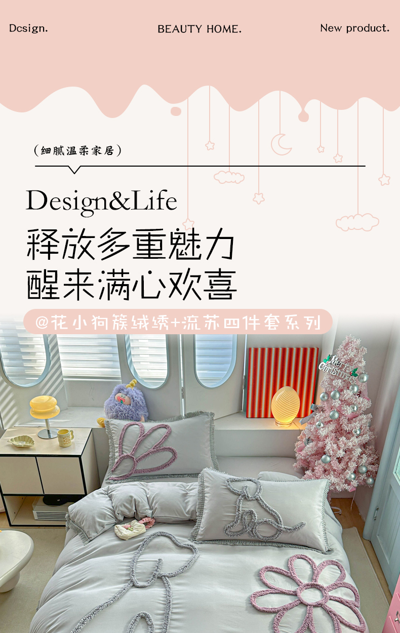 当前位置: 91家纺网 > 商品网购 > 床品套件 > 四件套 > 其它四件套 > 缘生活 2026新款立体簇绒绣流苏四件套 大爱花小狗-浅灰
