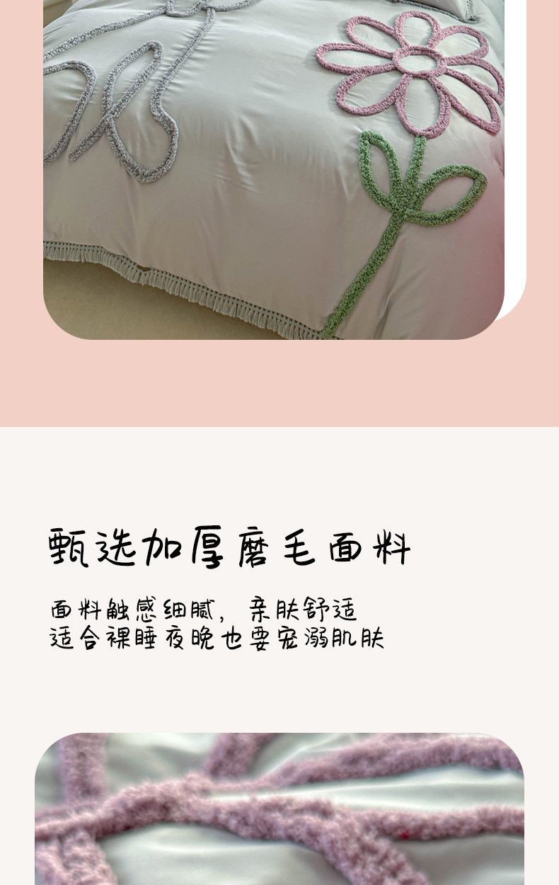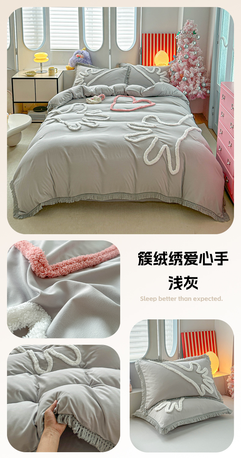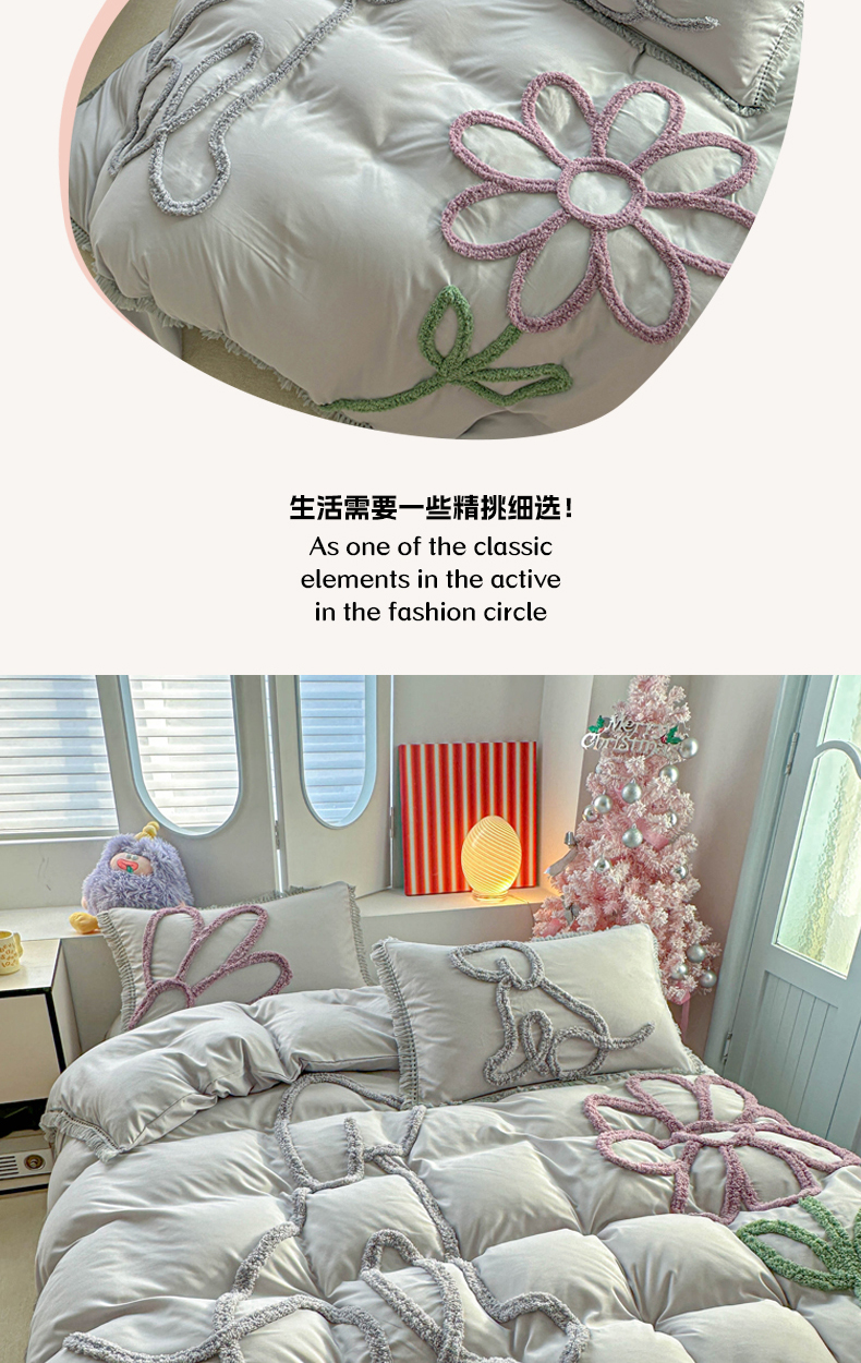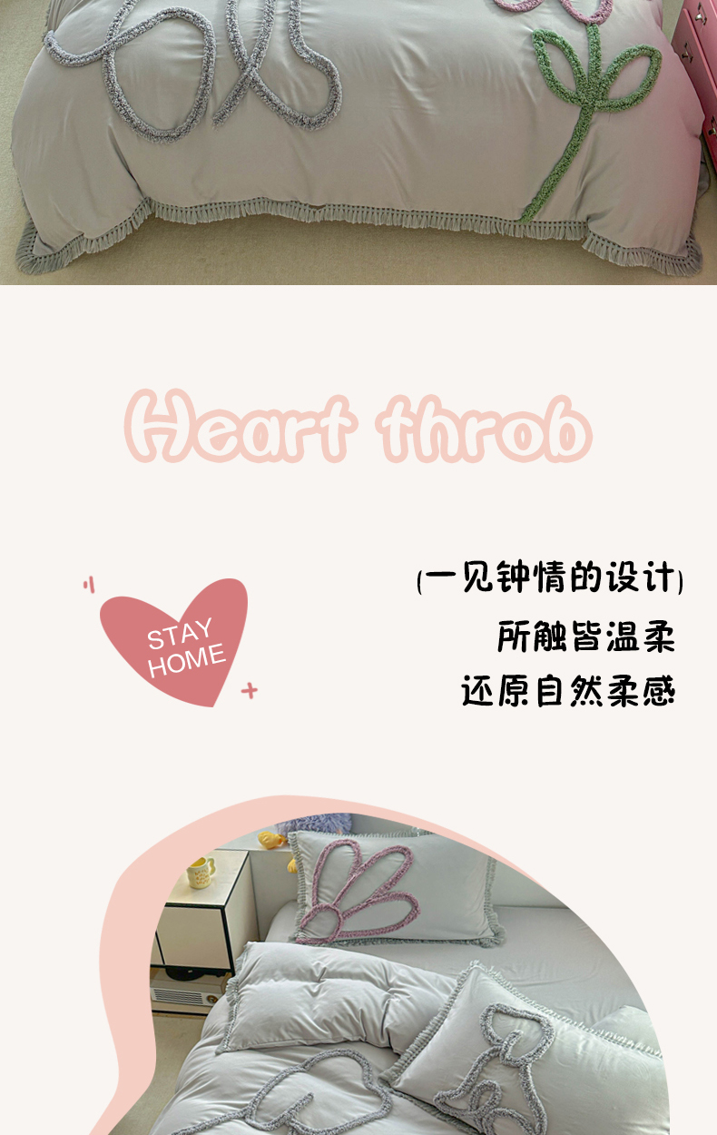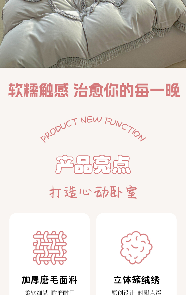 当前位置: 91家纺网 > 商品网购 > 床品套件 > 四件套 > 其它四件套 > 缘生活 2026新款立体簇绒绣流苏四件套 大爱花小狗-浅灰