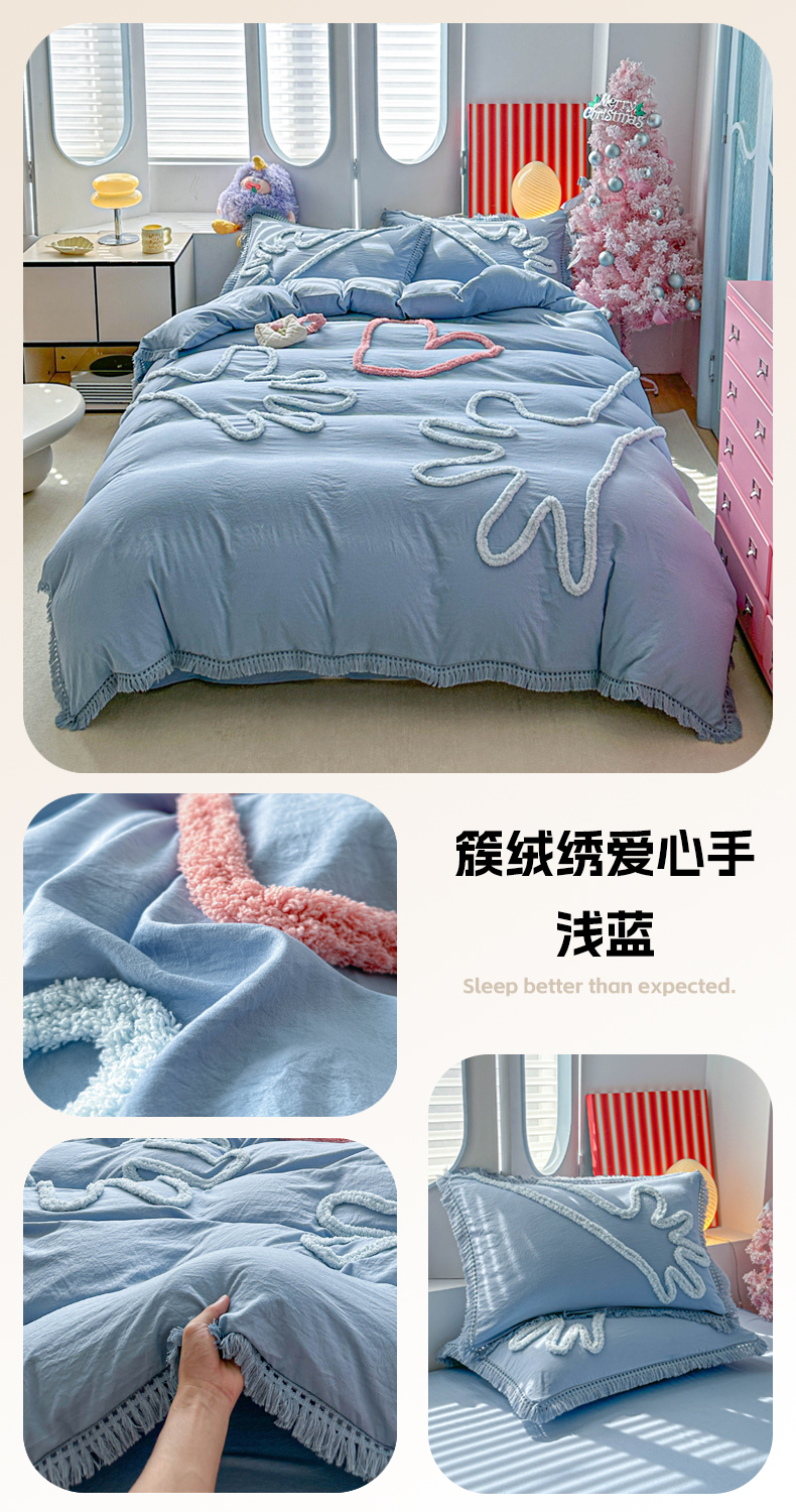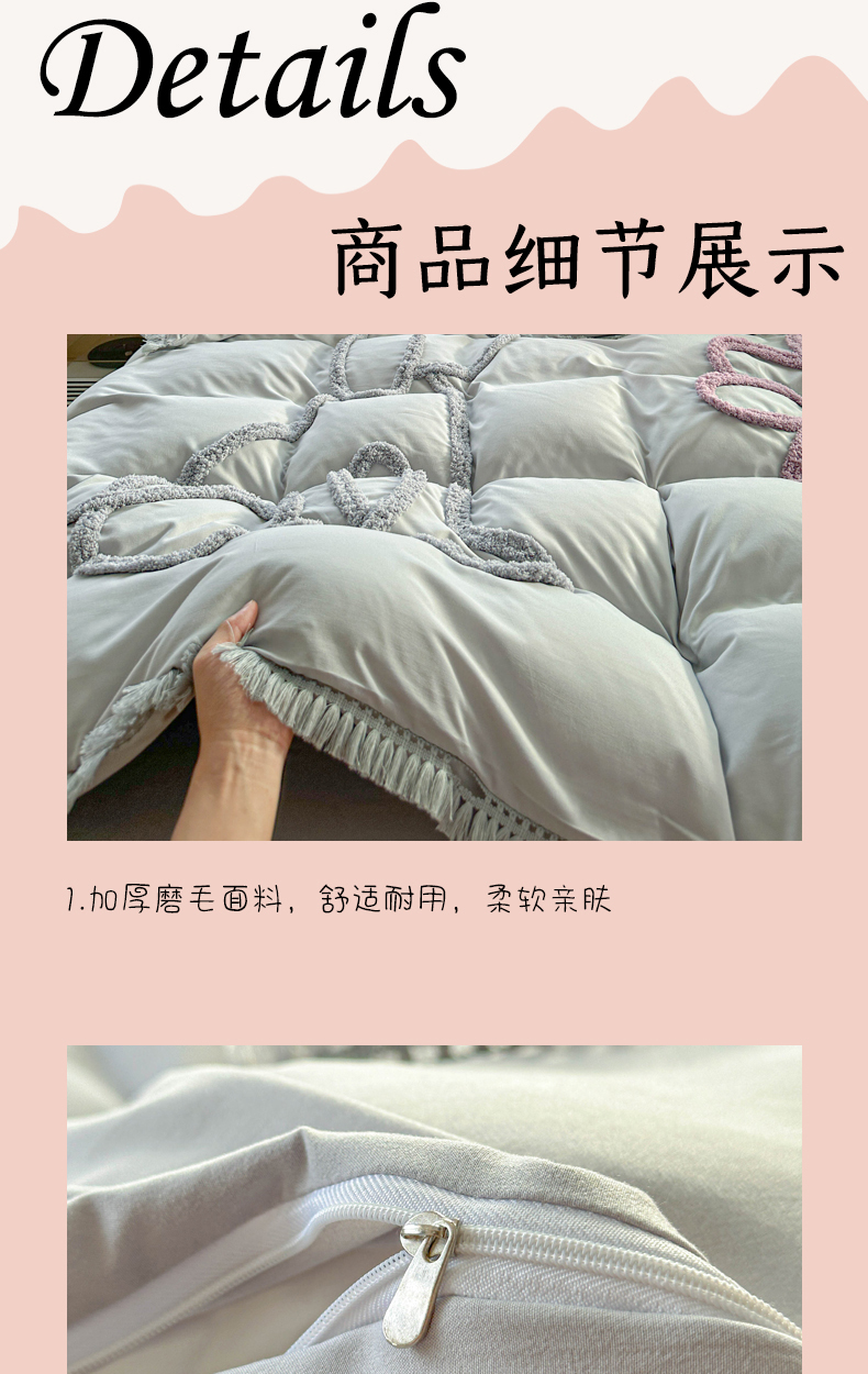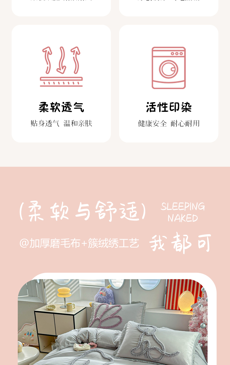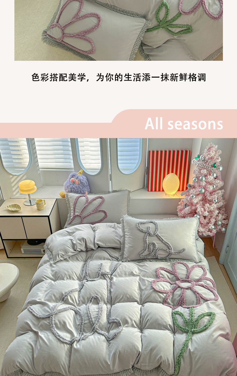 当前位置: 91家纺网 > 商品网购 > 床品套件 > 四件套 > 其它四件套 > 缘生活 2026新款立体簇绒绣流苏四件套 大爱花小狗-浅灰