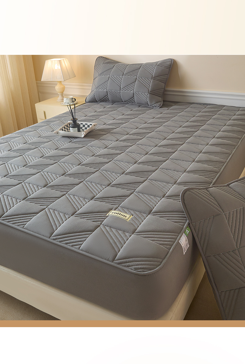 芬晴家纺 2026新款全棉纯棉夹棉棉花床笠单床笠-方纹系列 方纹-岩灰