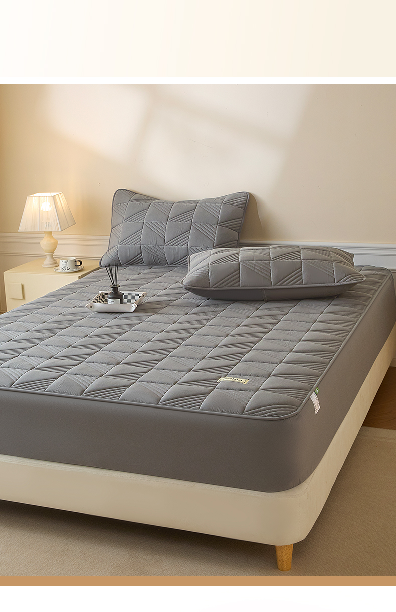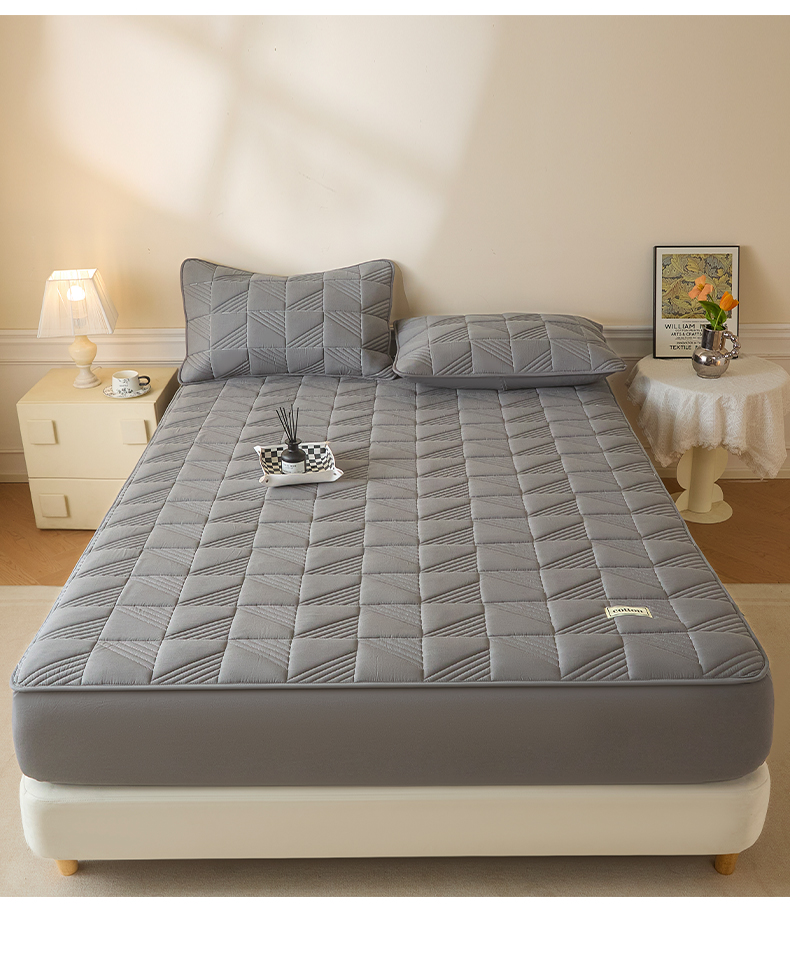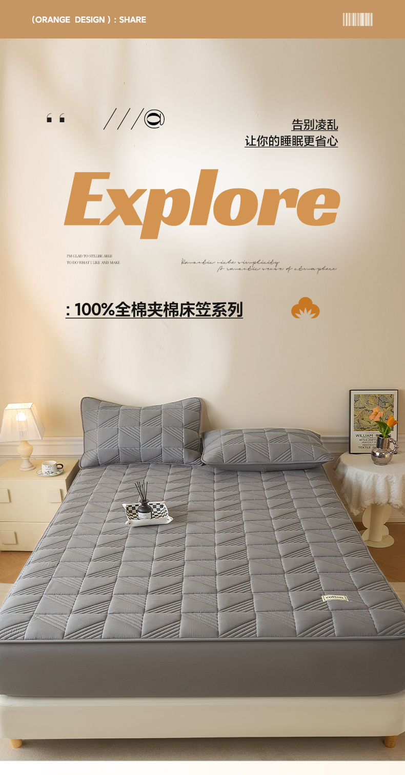 • 91家纺网 家纺一手货源 找家纺 芬晴家纺 2026新款全棉纯棉夹棉棉花床笠单床笠-方纹系列 方纹-岩灰