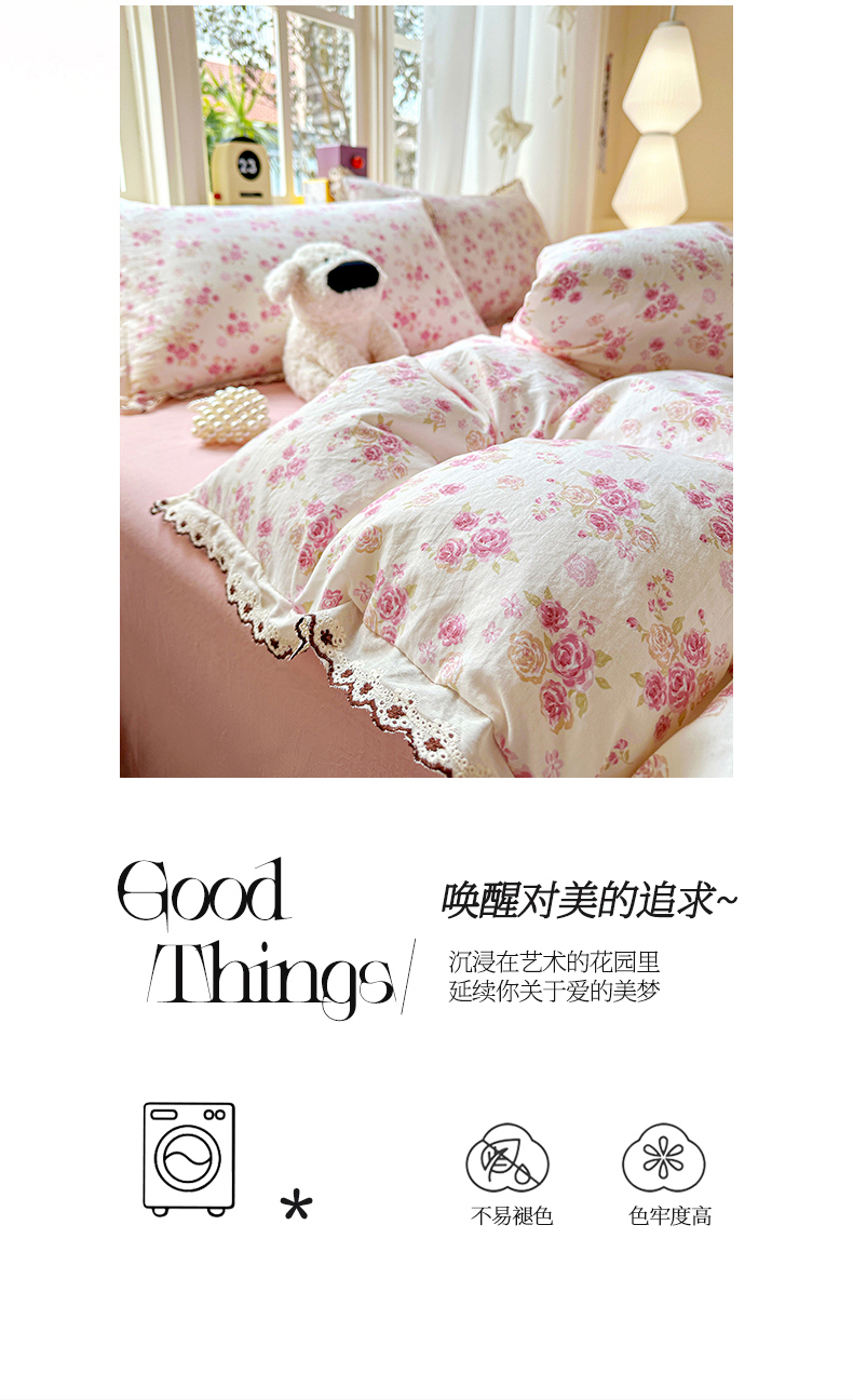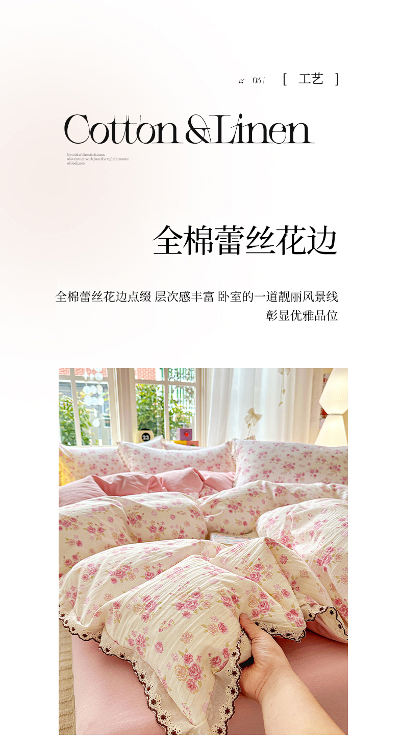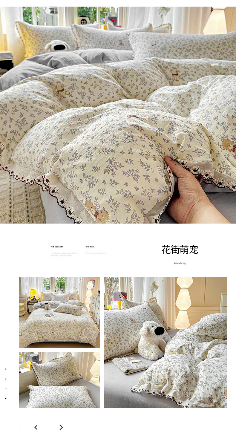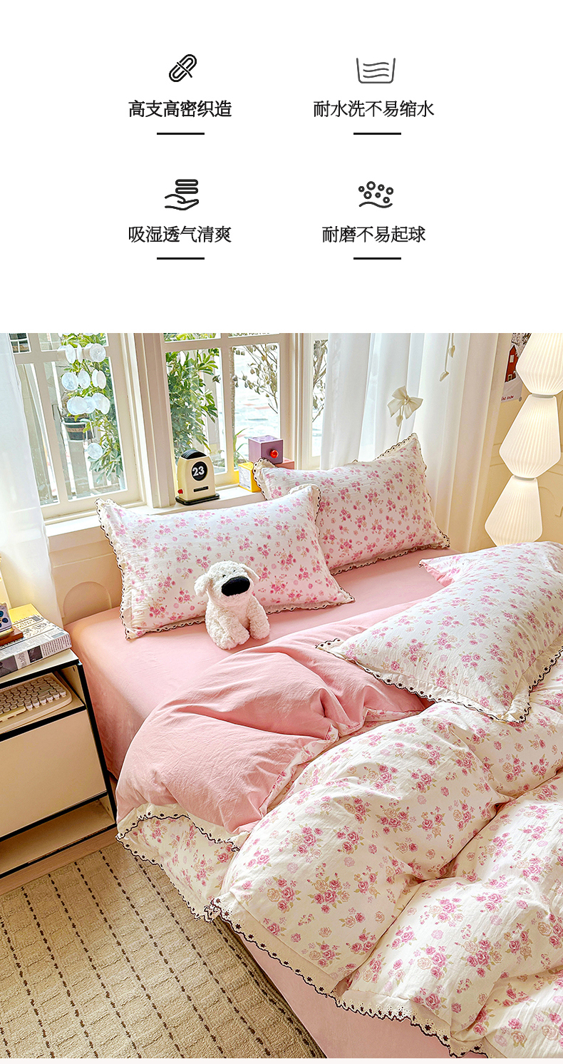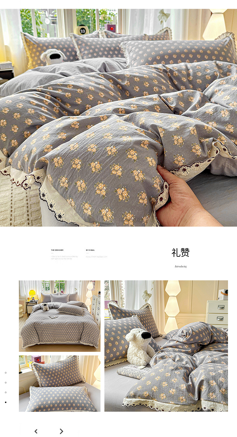 当前位置: 91家纺网 > 商品网购 > 床品套件 > 四件套 > 全棉普通四件套 > 韩秀家纺 2026新款A类纺棉四件套全棉花边古法水洗棉法式蕾丝花边四件套 绿荫