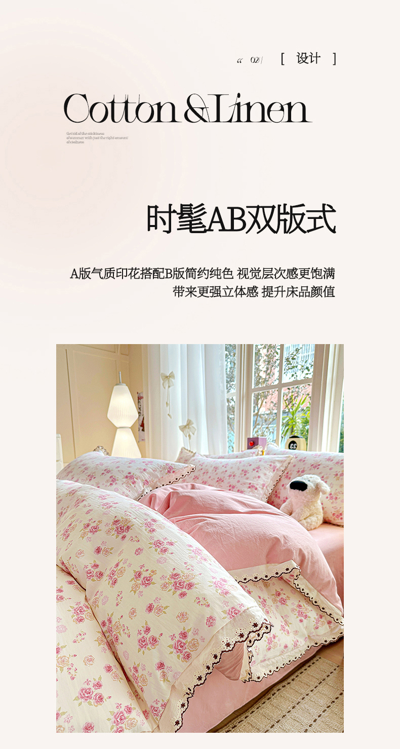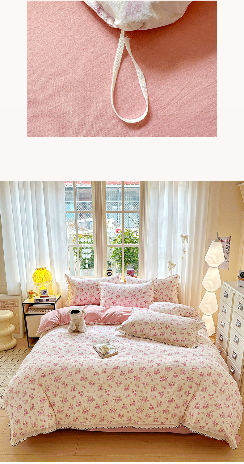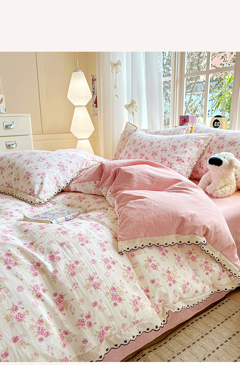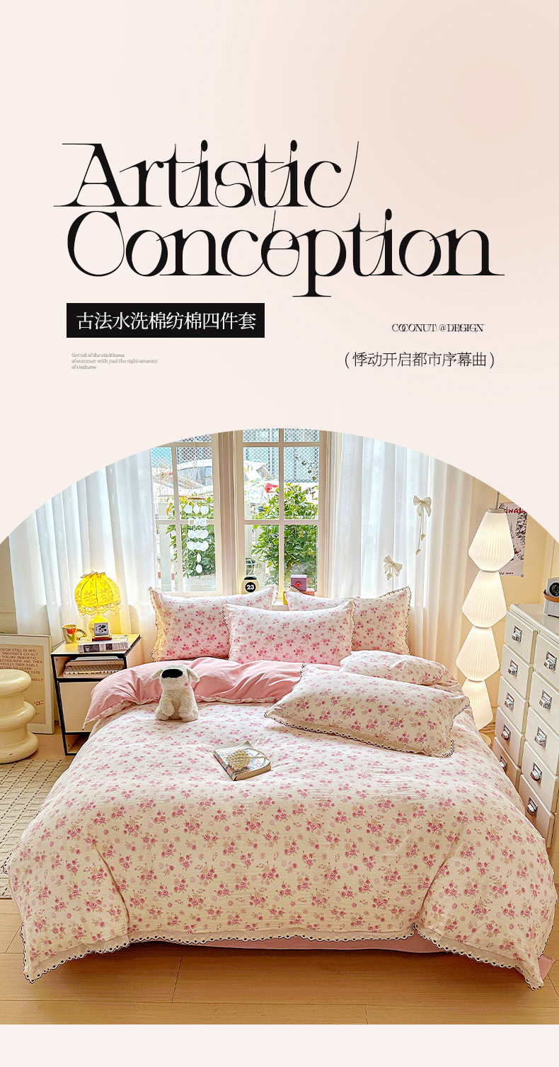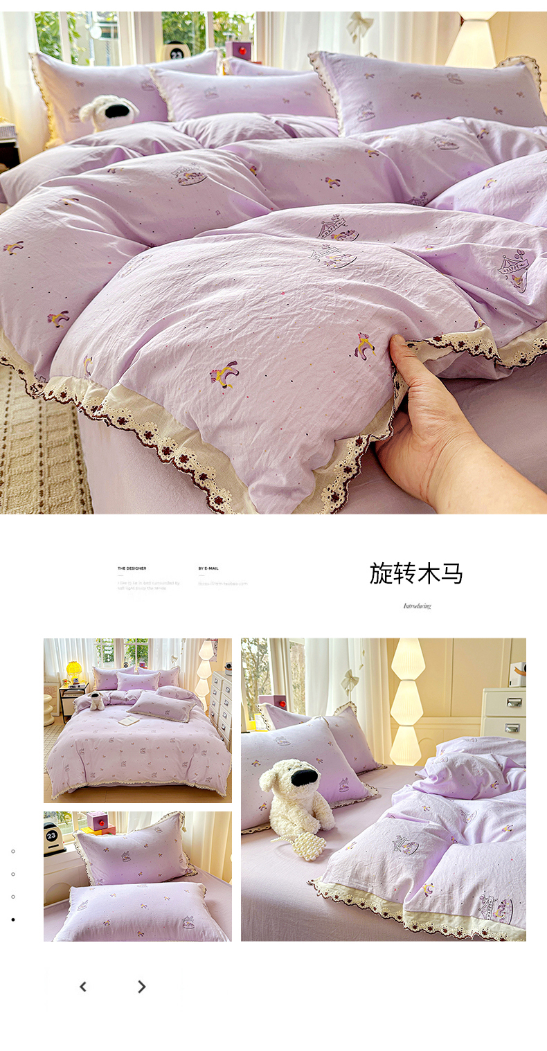 当前位置: 91家纺网 > 商品网购 > 床品套件 > 四件套 > 全棉普通四件套 > 韩秀家纺 2026新款A类纺棉四件套全棉花边古法水洗棉法式蕾丝花边四件套 绿荫