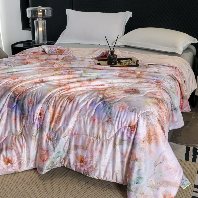 商品名称:亚龙工厂店 2026春夏新款直播网销爆款油光丝数码印花锦氨凉感被呱呱被夏被 晨露兰