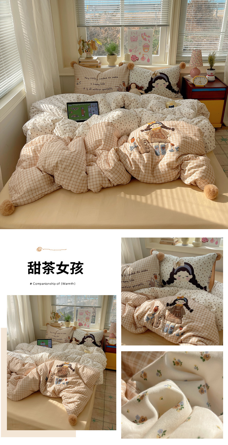 (总)丽涵家纺 2026新款全棉数码印花毛巾绣四件套-少女派,懵懂少女,熊崽奇遇,抱抱熊,甜梦满溢,甜茶女孩