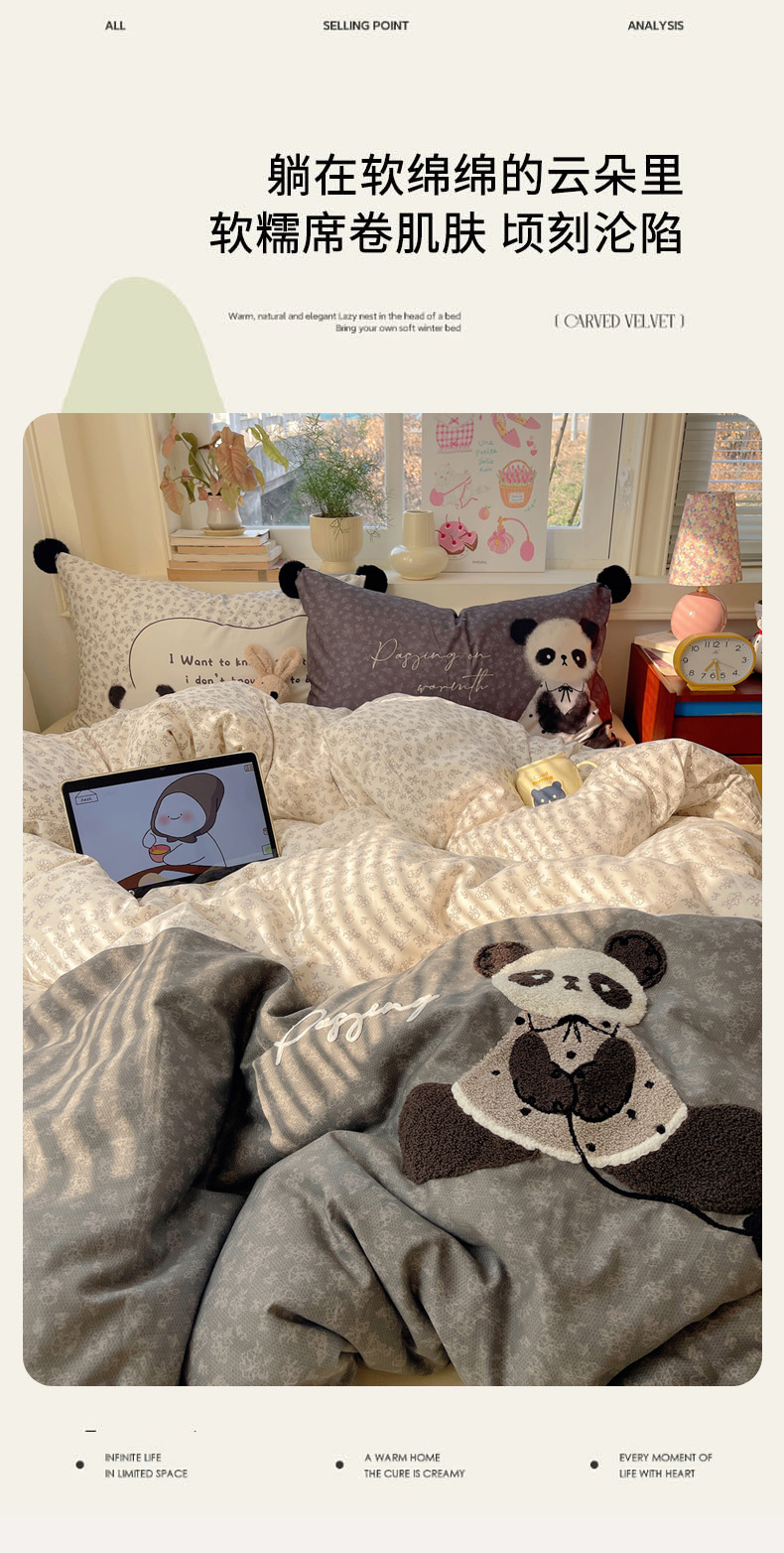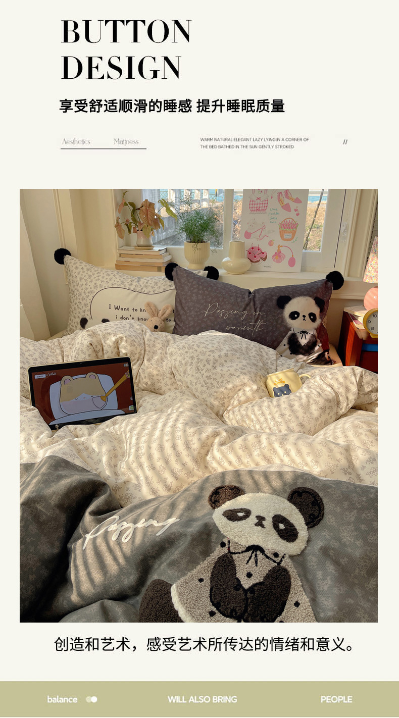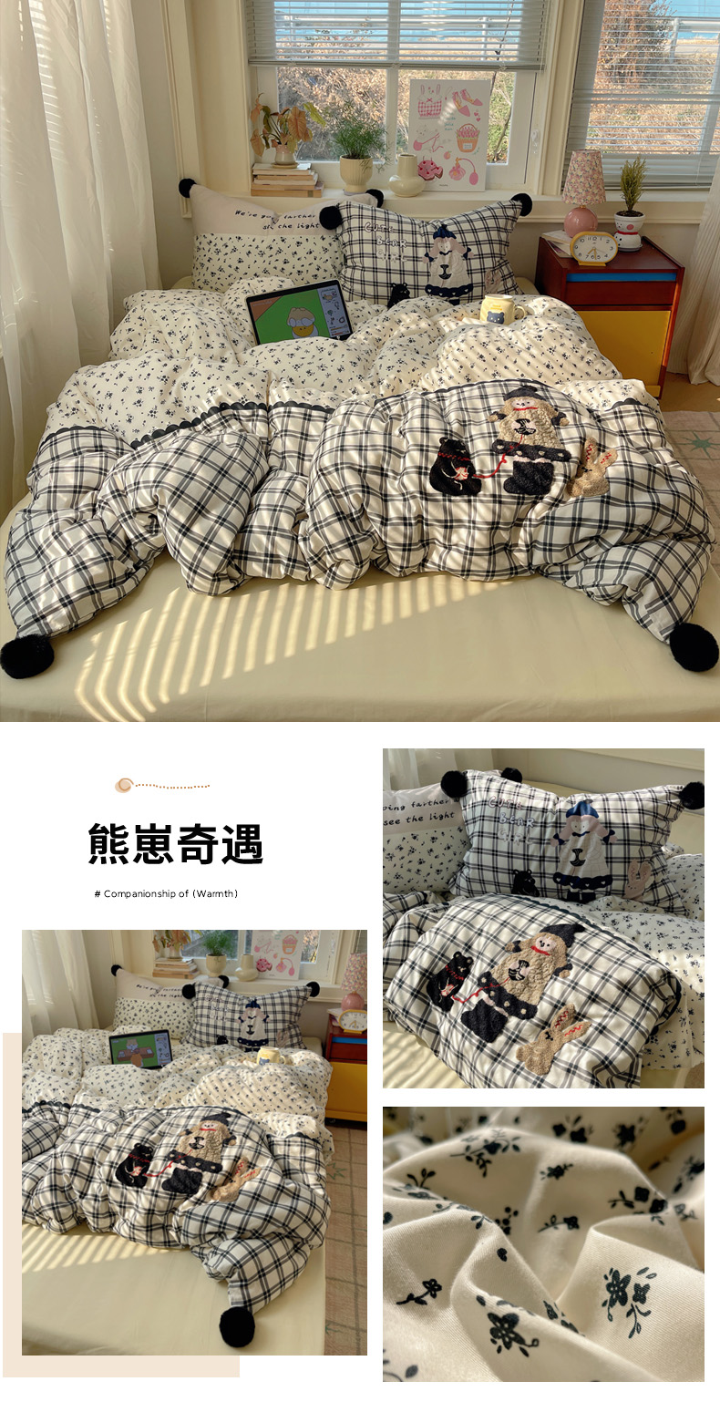 商品名称:丽涵家纺 2026新款全棉数码印花毛巾绣四件套-少女派 抱抱熊