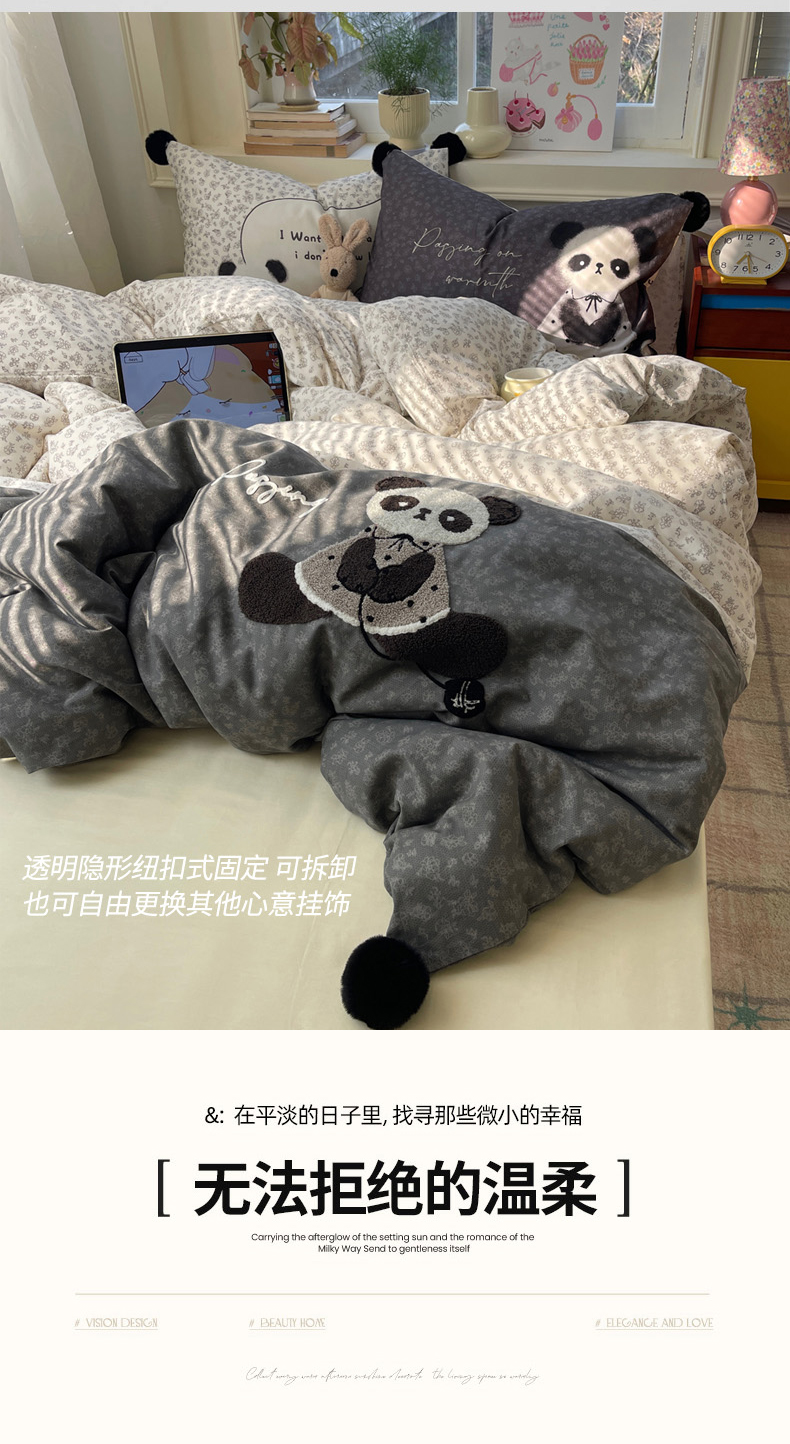 丽涵家纺 2026新款全棉数码印花毛巾绣四件套-少女派 抱抱熊