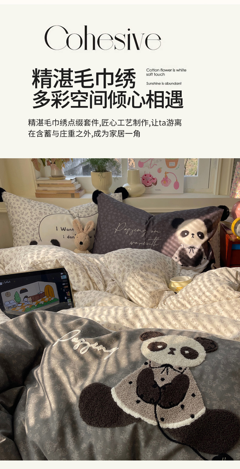 (总)丽涵 2025新款全棉毛巾绣花小清新四件套学生三件套(含买家秀),呆萌熊猫,多多熊,小女孩,小甜点,小兔子-红,铃兰花-绿,铃兰花-紫,胖大星-粉,胖大星-绿,芝士奶酪