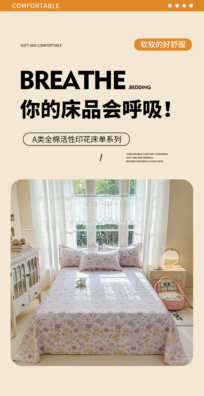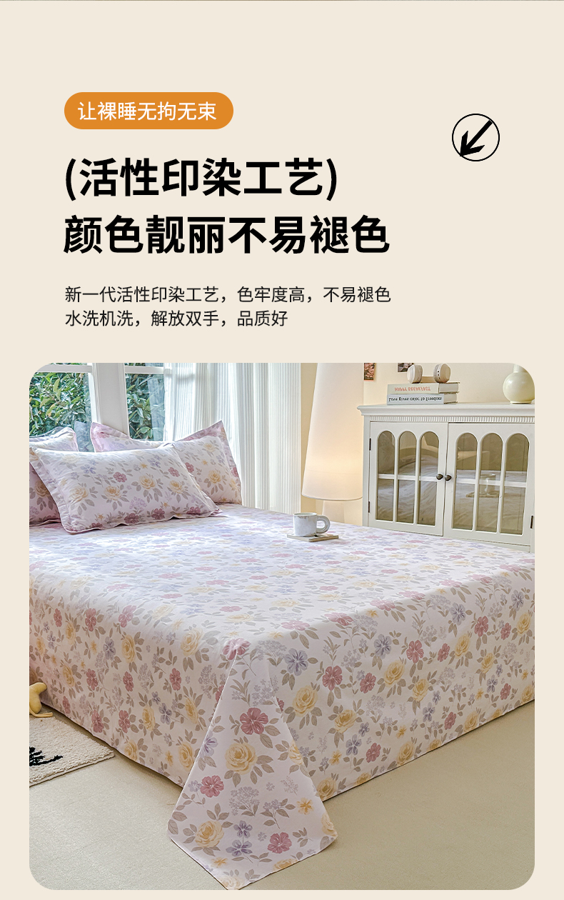 帛织澜家纺 2026新款A类新疆全棉纯棉12868单品印花床单系列(预留缩水,提供质检报告) 繁花锦年