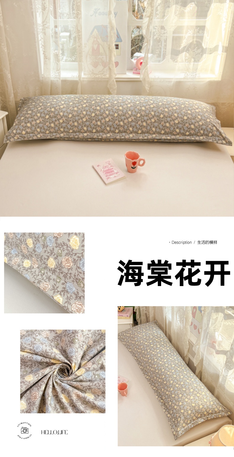 • 91家纺网 家纺一手货源 找家纺 梦舒羽 2026新款A类云朵棉单层枕套1.8米情侣双人加长枕芯内胆套-单层压线 海棠花开(单层压线)