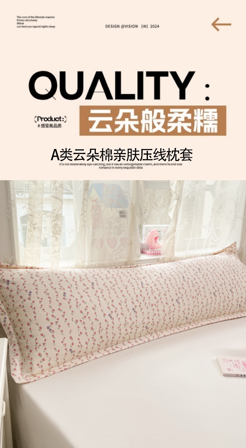 • 91家纺网 家纺一手货源 找家纺 圣比熊 2026新款A类云朵棉单层枕套1.8米情侣双人加长枕芯内胆套-单层压线 花漾甜心(单层压线)