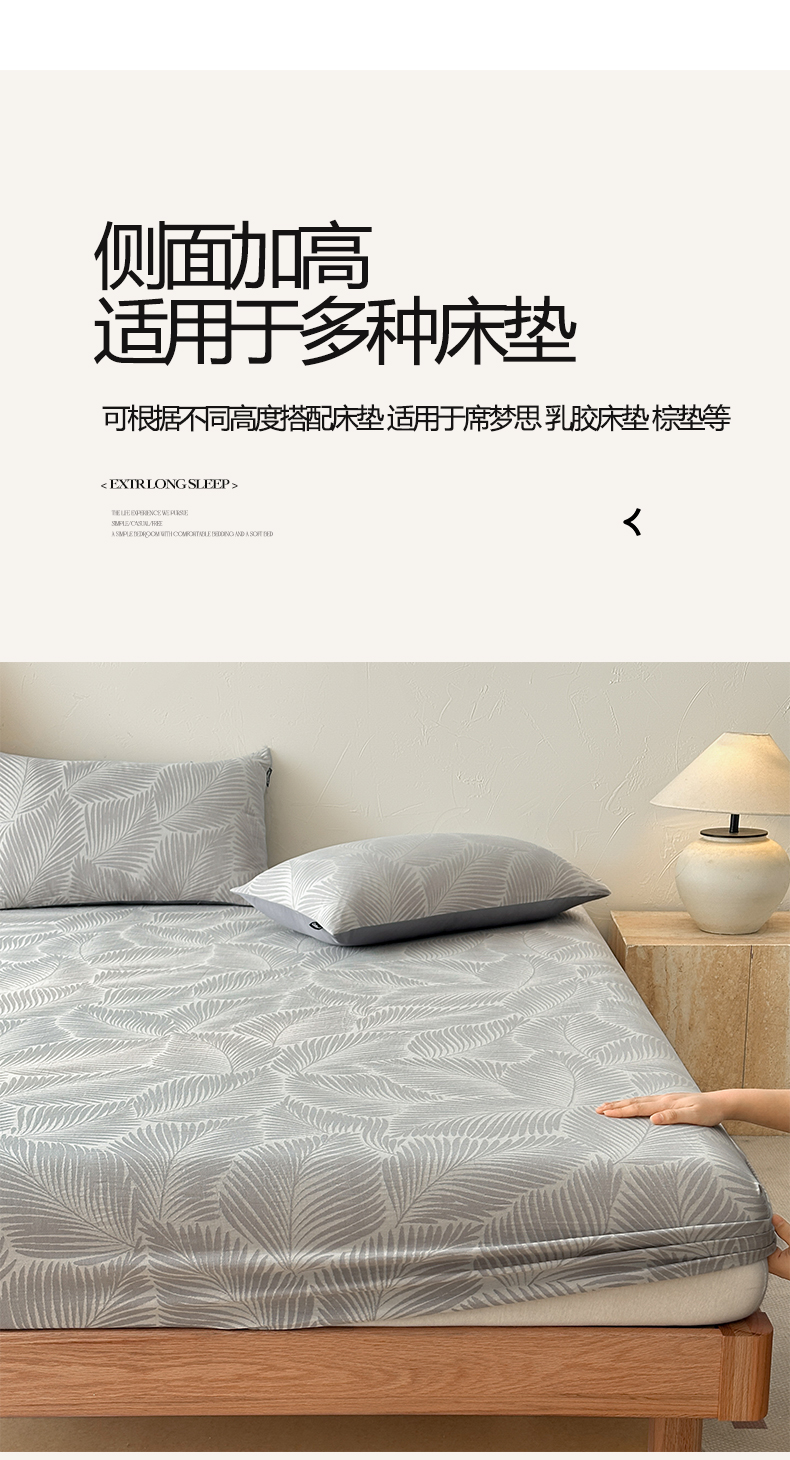 涵宸家纺 2026新款全棉提花色坊系列单床笠 床笠-叶影-灰