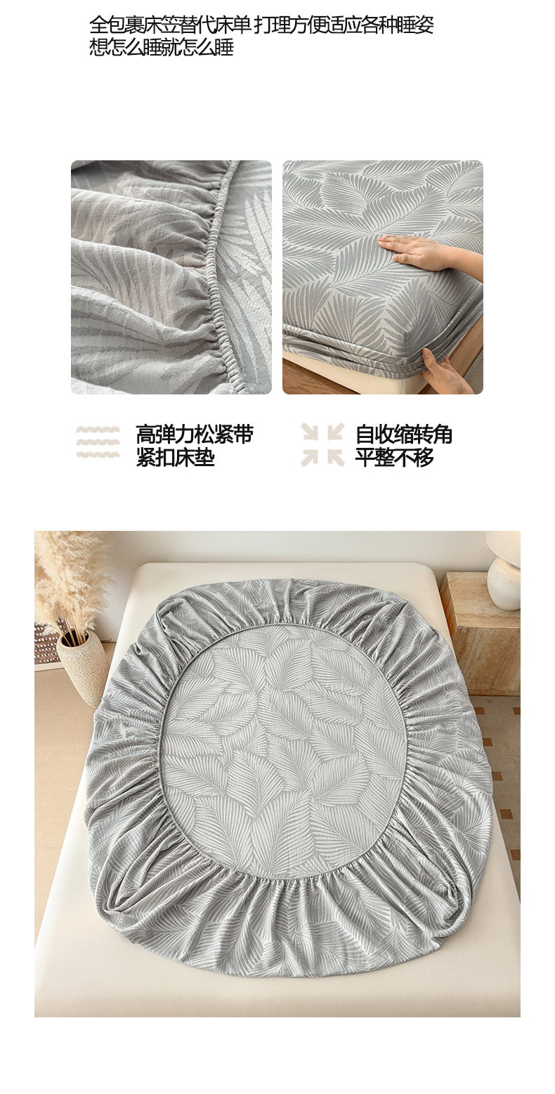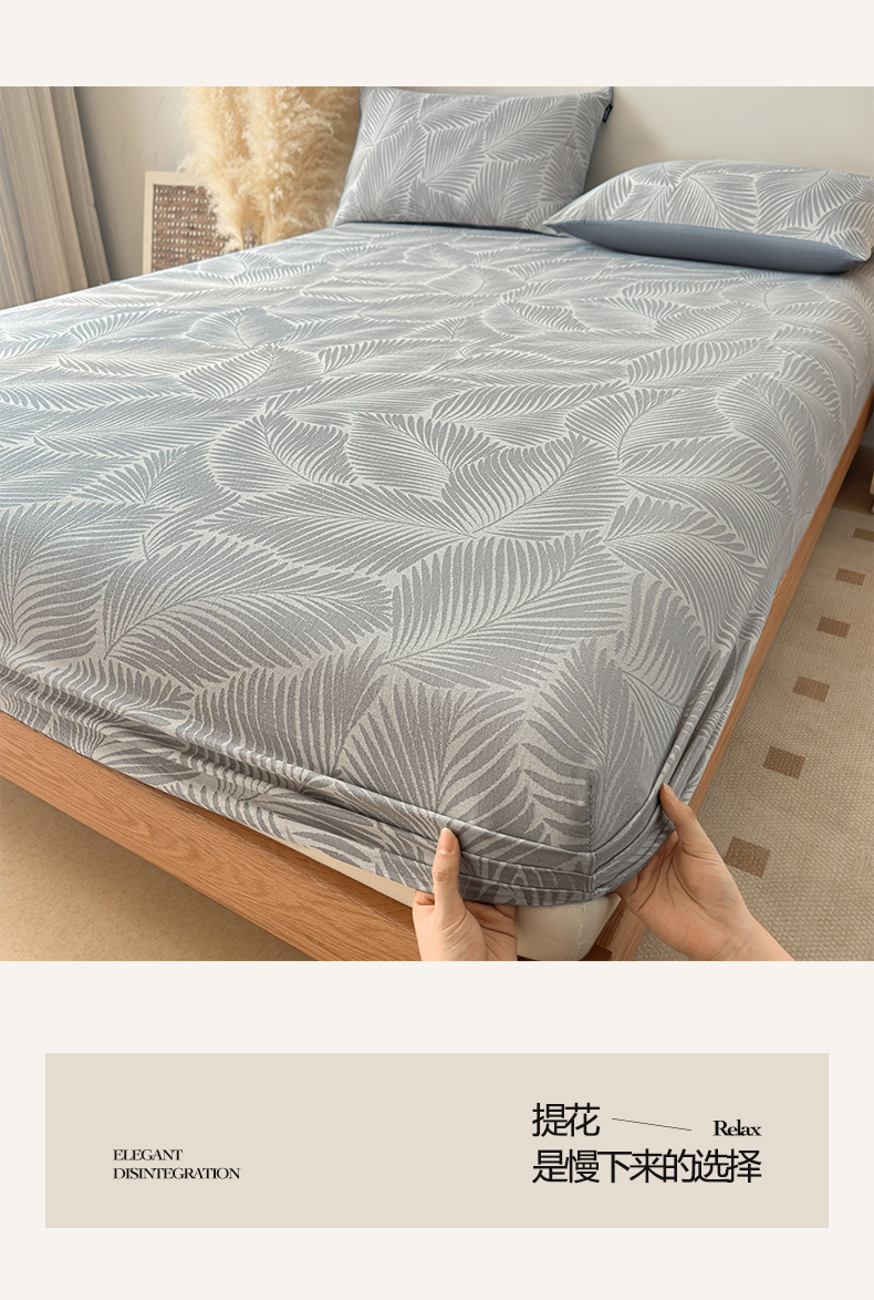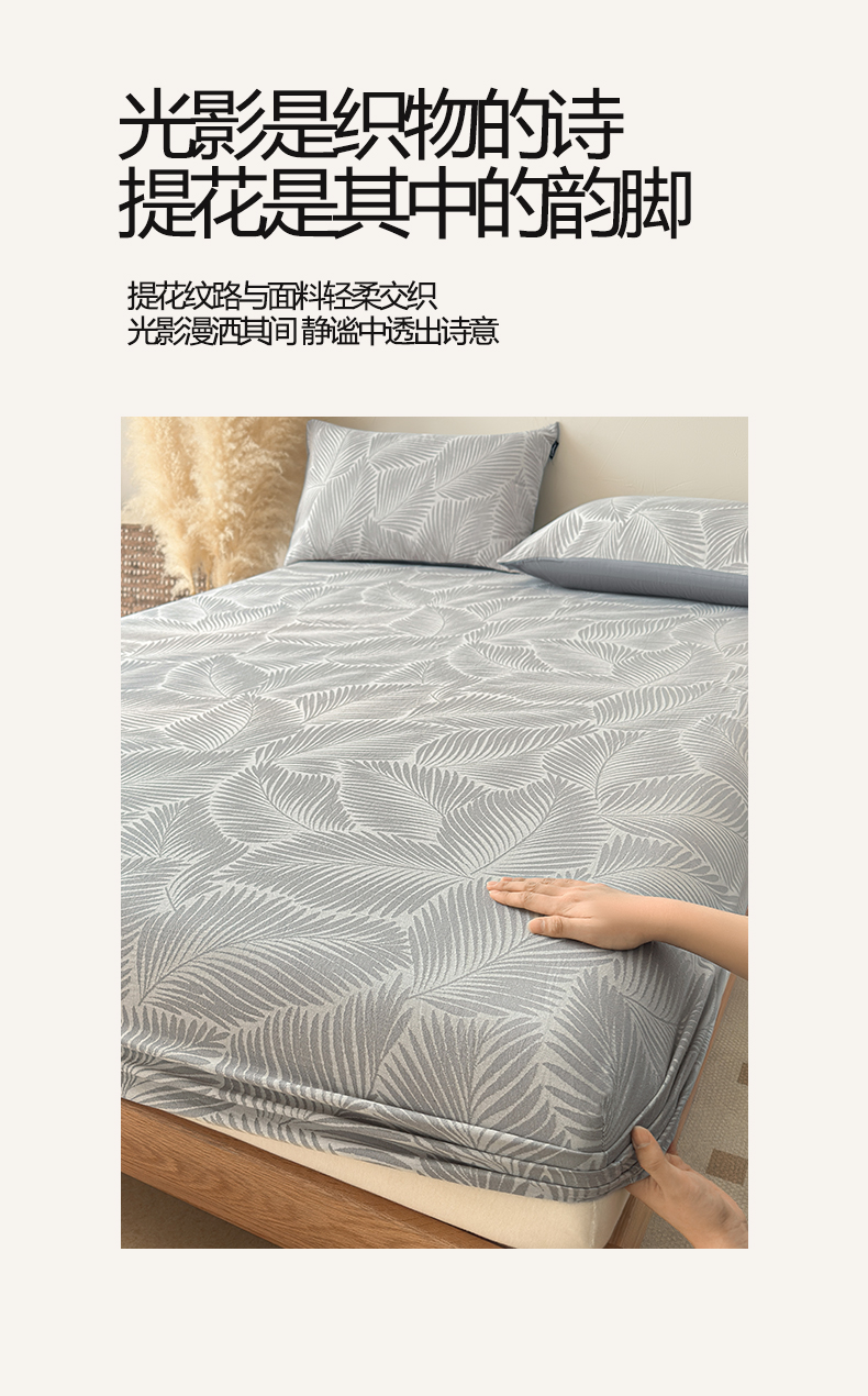 • 91家纺网 家纺一手货源 找家纺 涵宸家纺 2026新款全棉提花色坊系列单床笠 床笠-叶影-灰