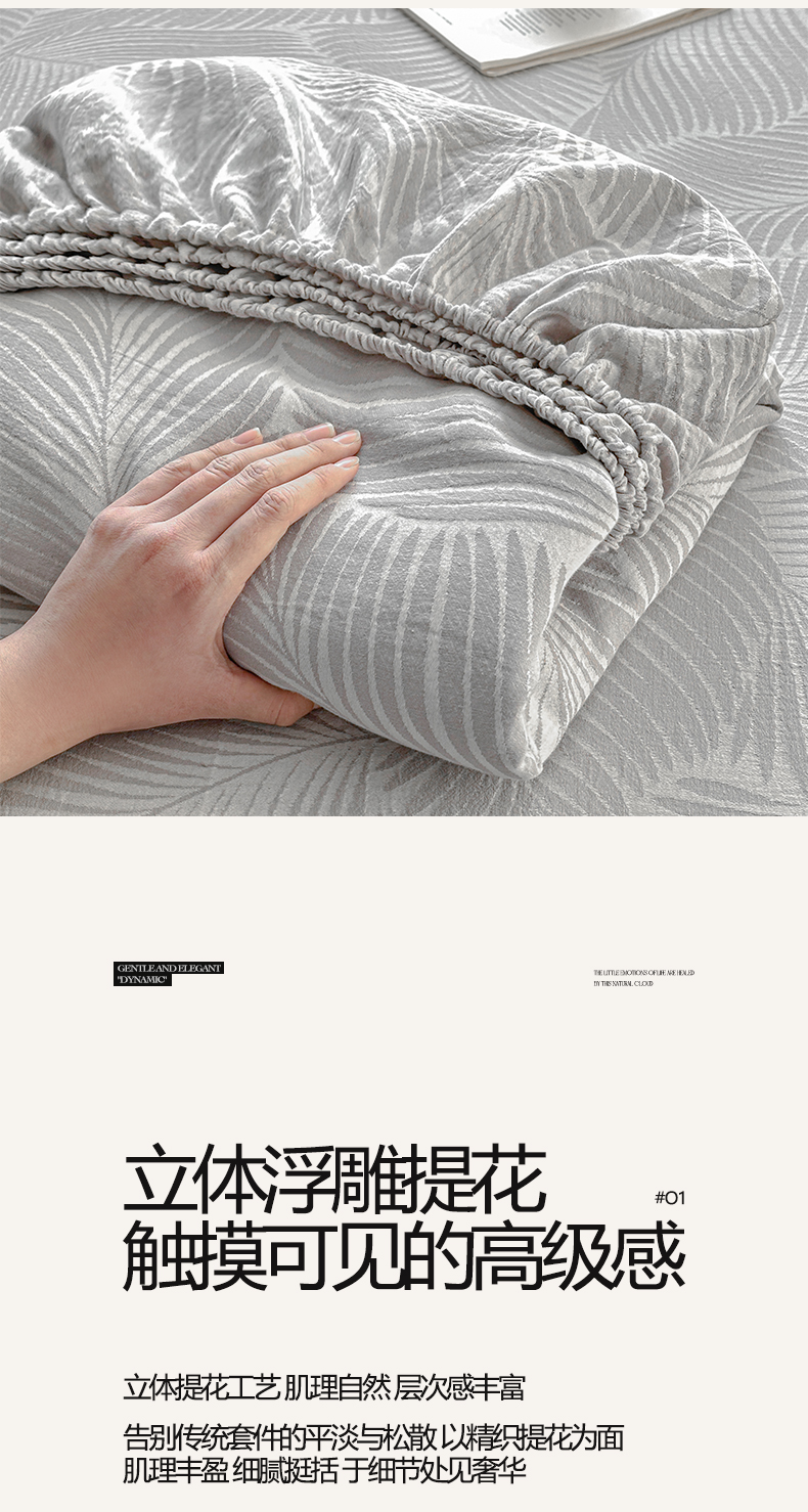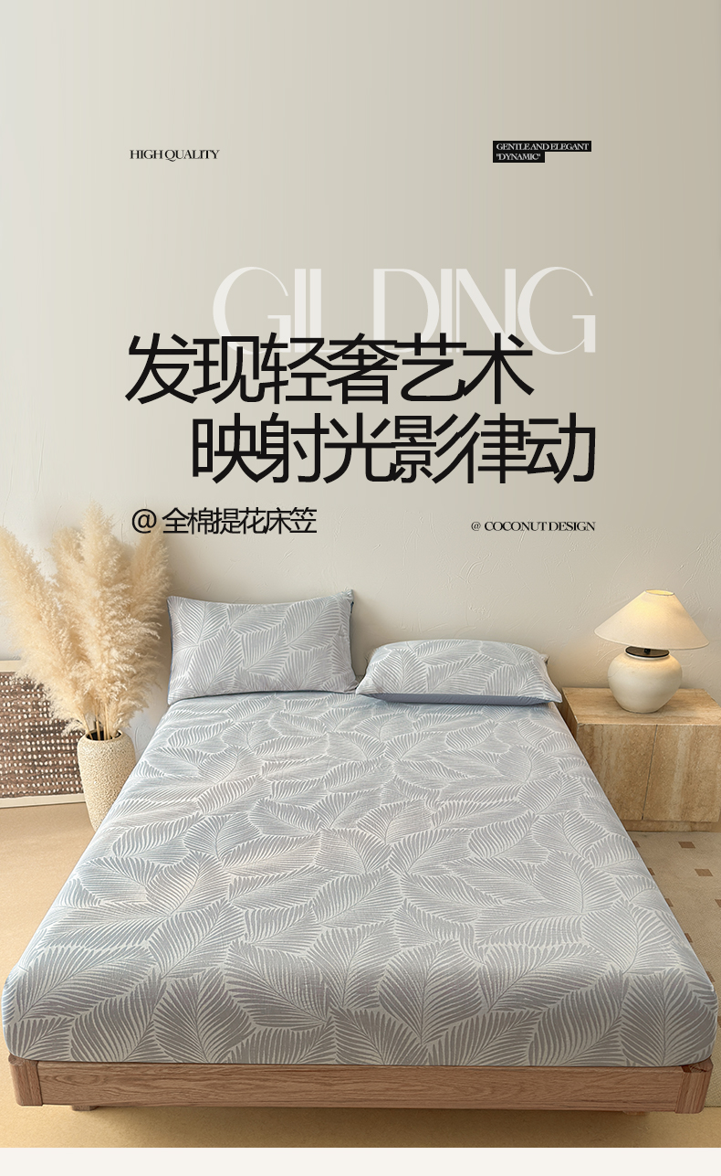 当前位置: 91家纺网 > 商品网购 > 床上用品 > 床笠 > 涵宸家纺 2026新款全棉提花色坊系列单床笠 床笠-叶影-灰