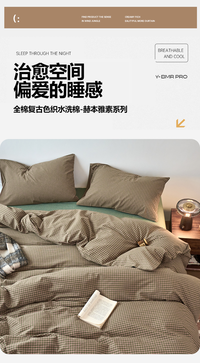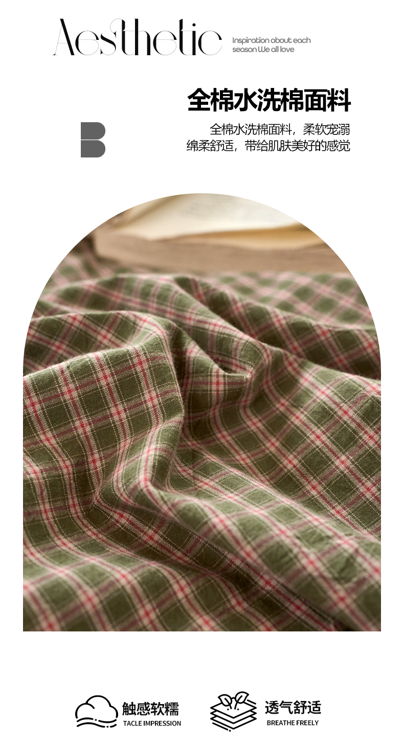 当前位置: 91家纺网 > 商品网购 > 床品套件 > 四件套 > 全棉普通四件套 > 兰紫橙家纺 2026新款全棉A类深色复古色织方格子水洗棉-赫本雅素系列(含买家秀和质检报告) 赫本绿
