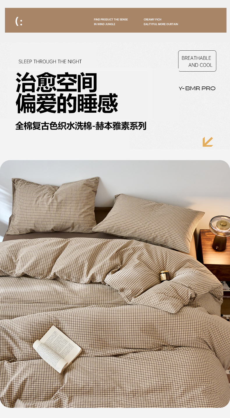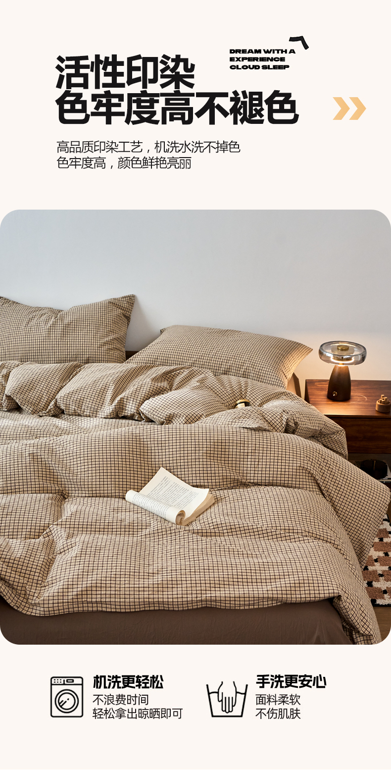 当前位置: 91家纺网 > 商品网购 > 床品套件 > 四件套 > 全棉普通四件套 > 兰紫橙家纺 2026新款全棉A类深色复古色织方格子水洗棉-赫本雅素系列(含买家秀和质检报告) 沐风米